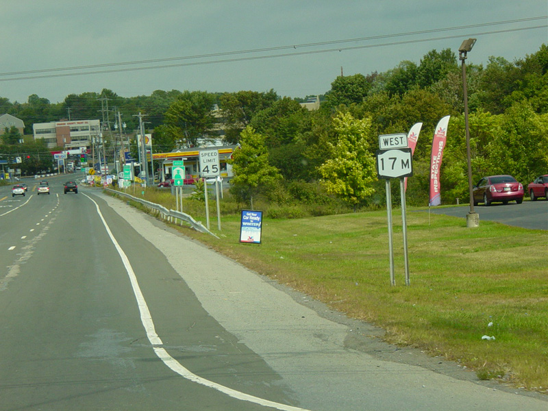 Just past the interchange with I-84, NY 17M splits off from US 6 and runs north as a four-lane undivided road.