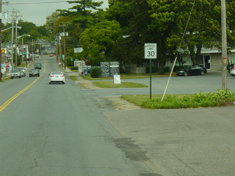 Turn left onto Fulton Street at this traffic light to stay on NY 17M. Academy Avenue continues straight ahead as a local street.