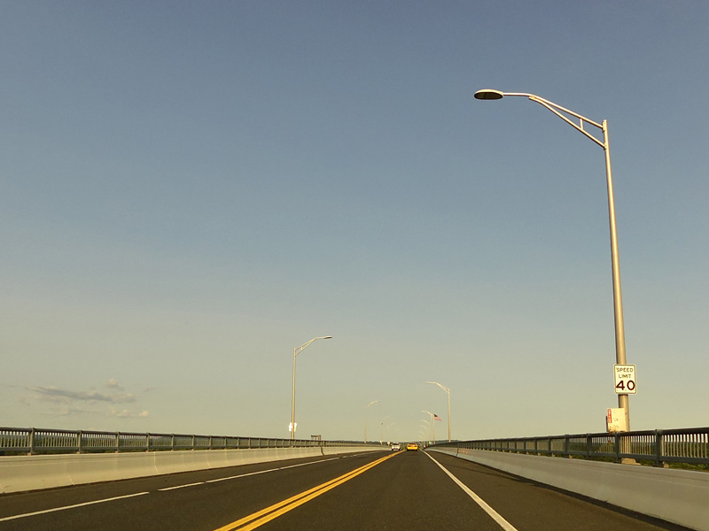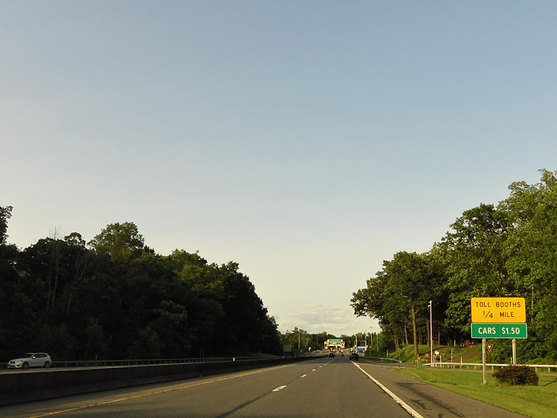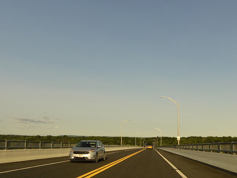 These pictures show the approach to the Kingston-Rhinecliff Bridge as it appeared before the conversion to cashless tolling. The tollbooth has been demolished and replaced with a cashless tolling gantry.