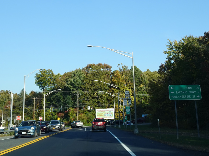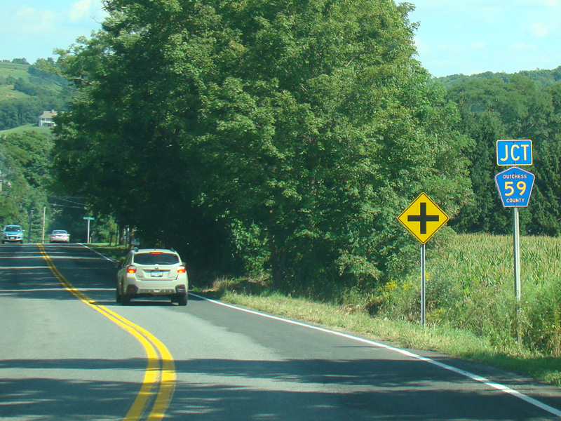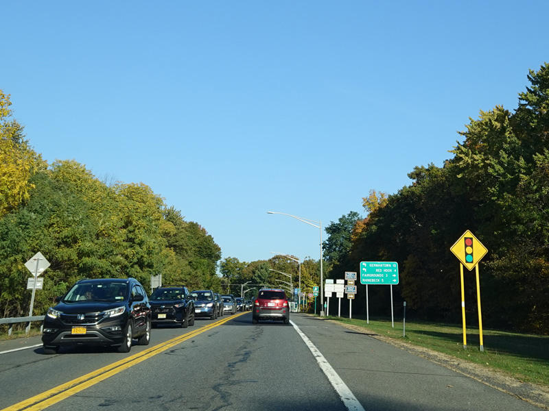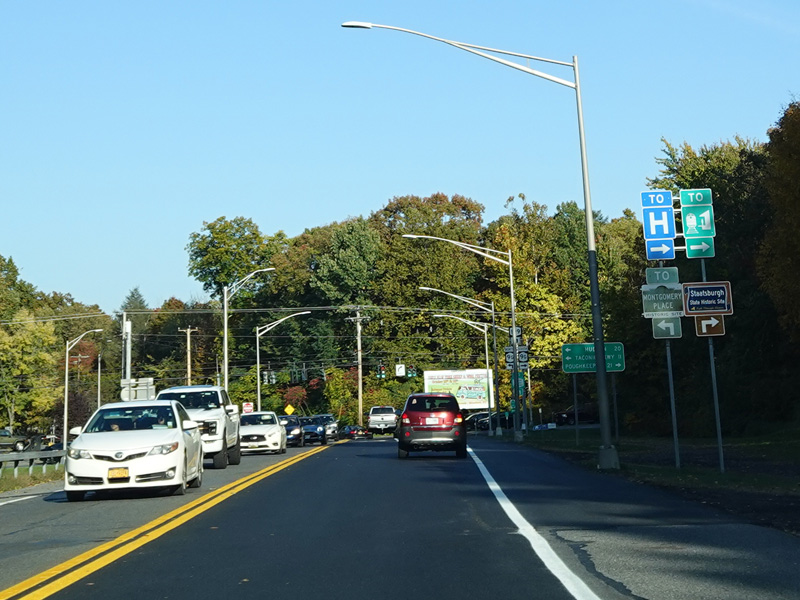 Welcome to Dutchess County! There is a traffic light at River Road (CR 103). Turn left to go north or right to go south.