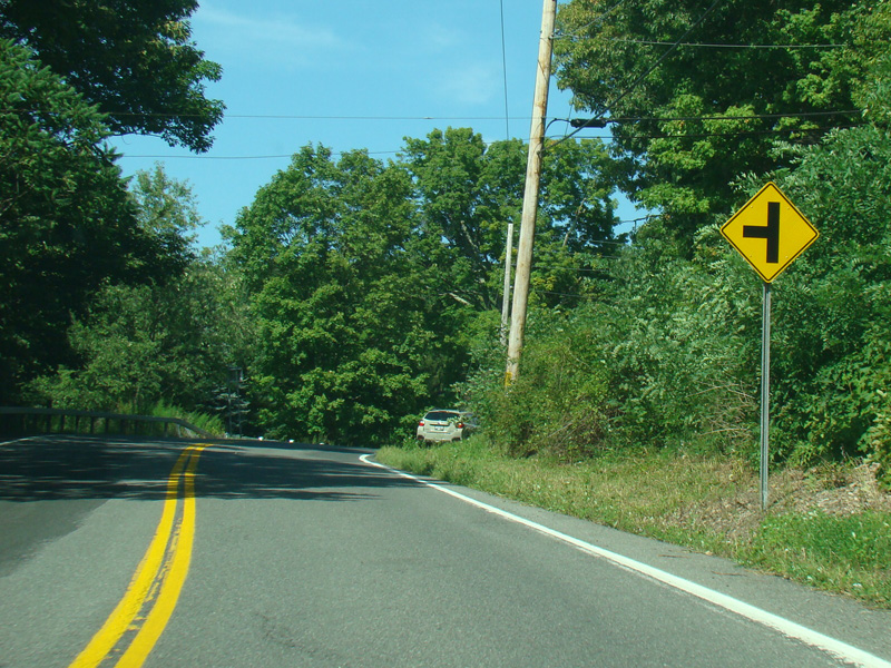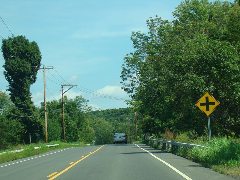 Welcome to Pulvers Corners! There is an uncontrolled intersection at Bean River Road (CR 59). Turn left to go north or right to go south.