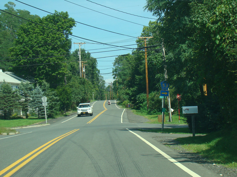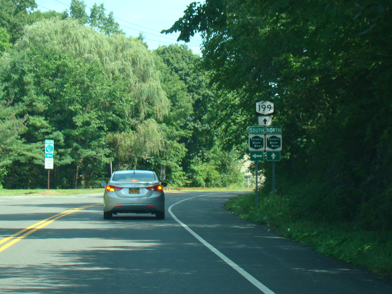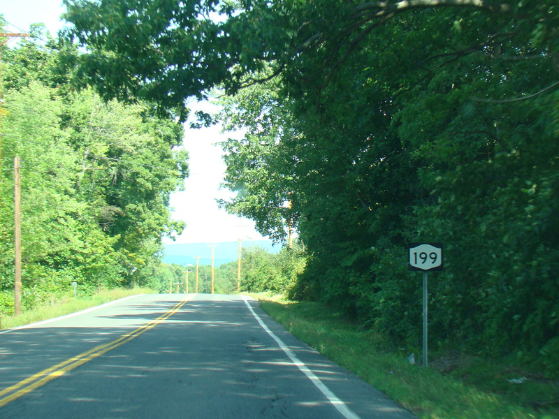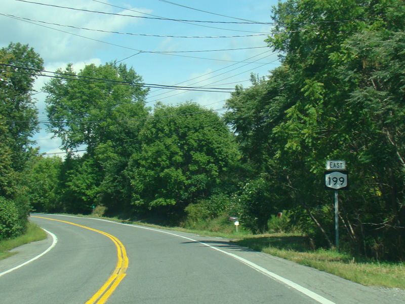 There is a traffic light at NY 9G. Turn left to go north and to stay on NY 199. Turn right to go south.