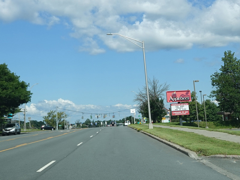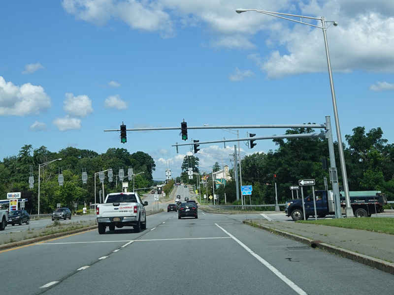 There is a grade-separated interchange with Loudon Road (US 9). Troy-Schenectady Road has a traffic circle at the ramps.
