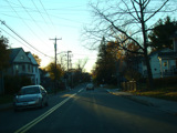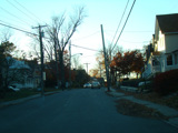 Wickham Avenue runs west as a two-lane undivided road. This is one of the few places where a state route in New York doesn't have a double yellow line down the middle.