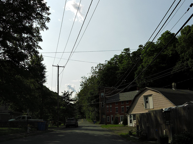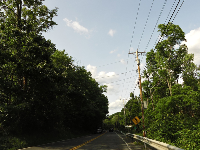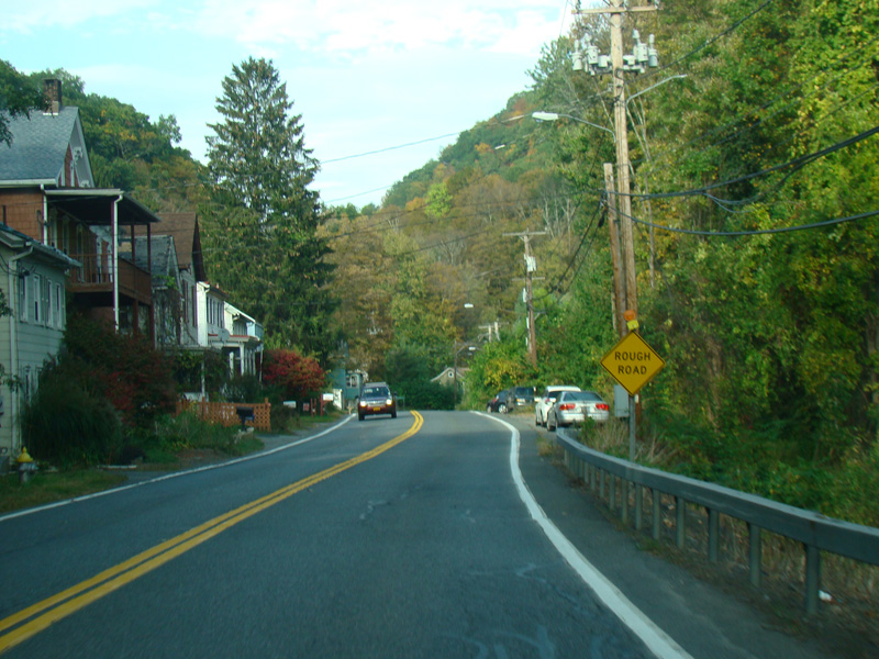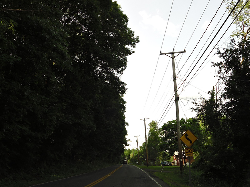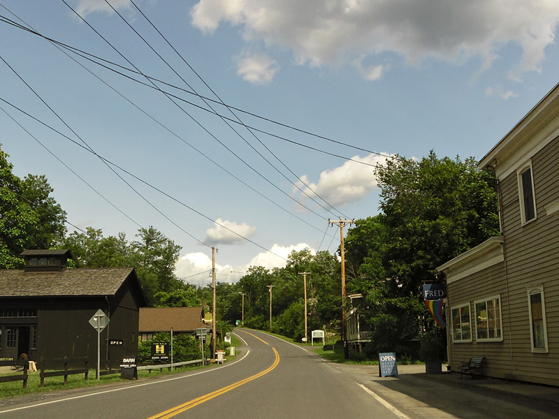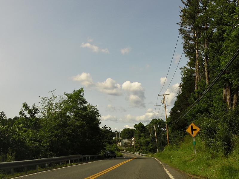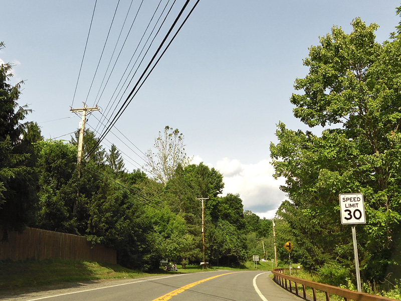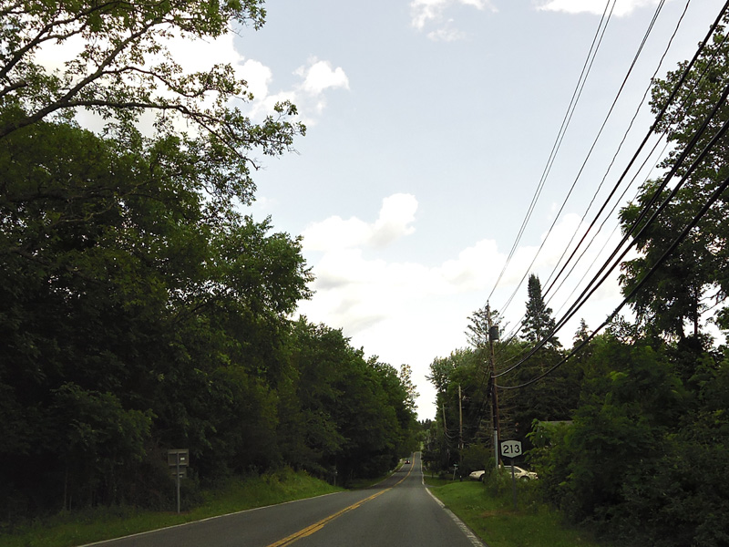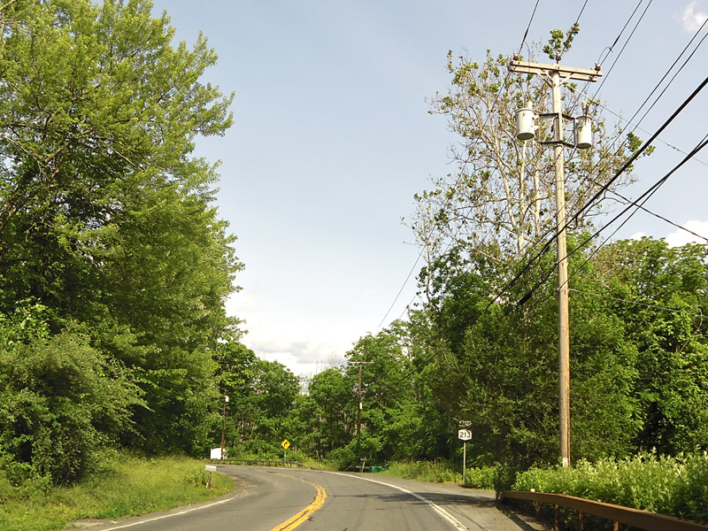 Mountain Road (CR 28) begins on the left. Bear right onto Abeel Street to stay on NY 213.