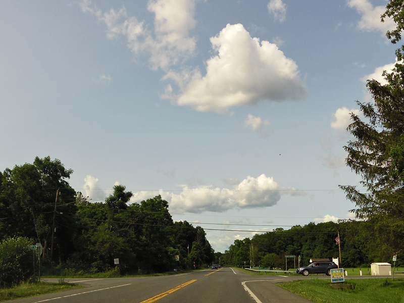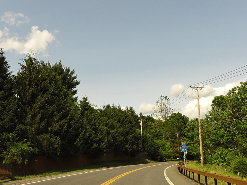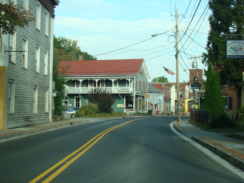 Welcome to Rosendale! Here, NY 213 is known as Lawrenceville Road. Cottekill Road (CR 26A) begins on the left.