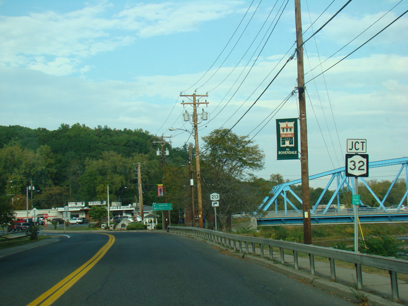 NY 213 is multiplexed with NY 32 south for a couple of miles across Rondout Creek and the Wallkill River.