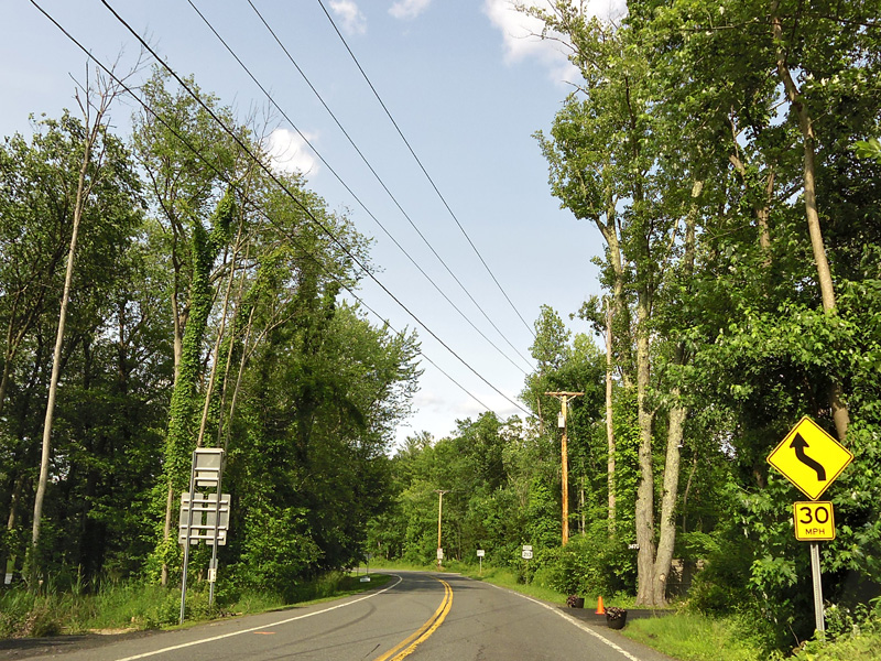 There is a traffic light at Lucas Turnpike (CR 1). Turn left to go north or right to go south.
