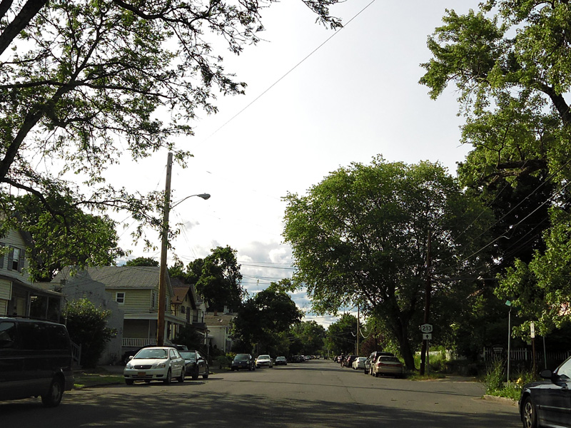 There is a stop sign and a flasher at Dunn Street, a one-way street that carries the westbound side of NY 213 for a few blocks. Make the first left after the flasher onto Wilbur Avenue to stay on NY 213.