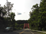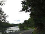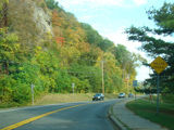 Perrine's Bridge, a covered bridge open only to pedestrians, is on the left here.