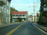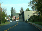 Main Street ends ahead at NY 32. Make a right at the stop sign and then a second right to go south and to stay on NY 213. Continue straight past the stop sign and turn left at the traffic light to go north.