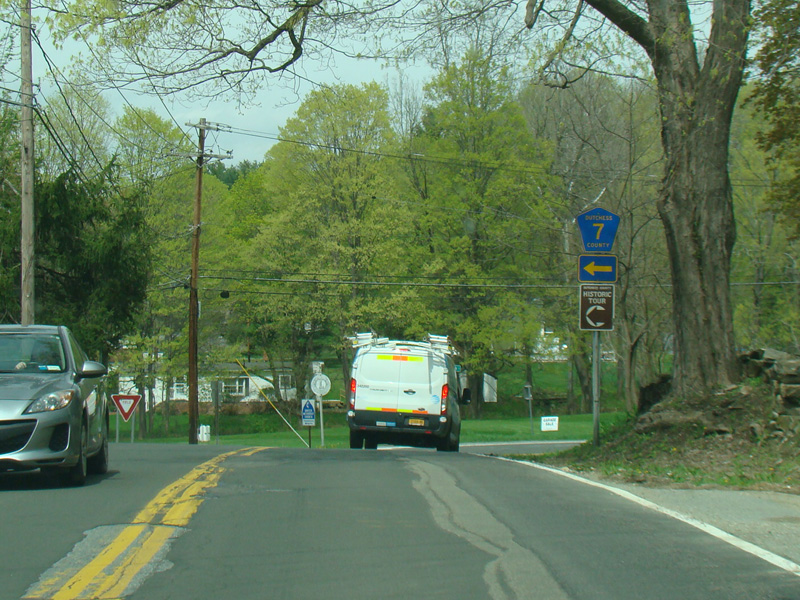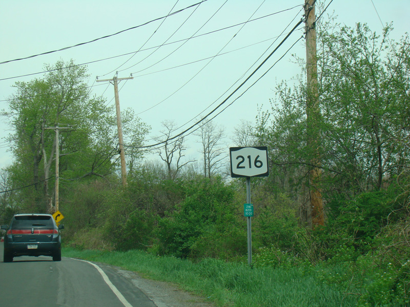 NY 216 begins at NY 52 in Hopewell Junction and runs northeast. There is a railroad crossing.