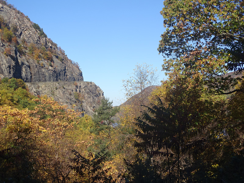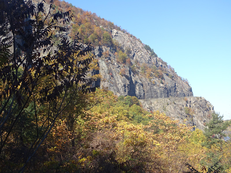 These pictures show the surrounding scenery of Storm King Mountain and the Hudson River as observed from one of the parking areas along the Storm King Highway.