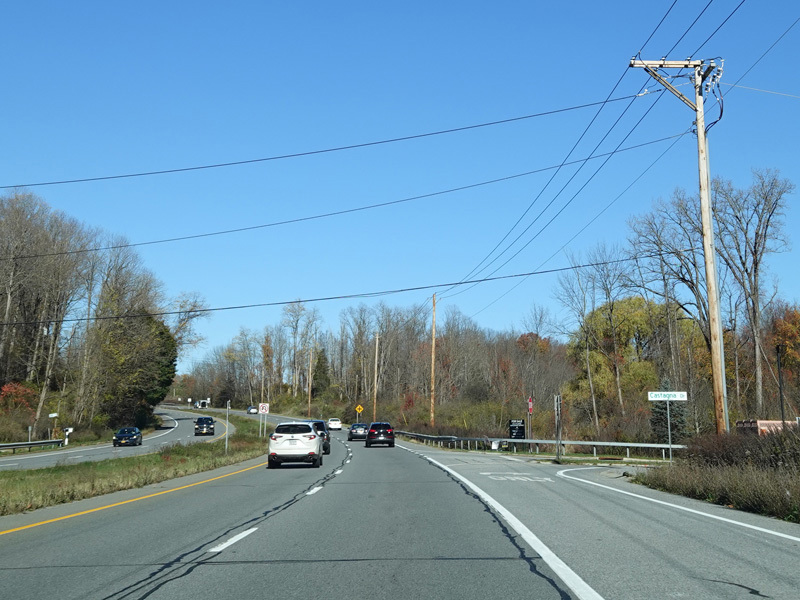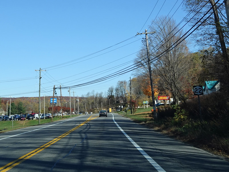 There is a grade-separated interchange with NY 55. Take the exit on the right to go west. Continue straight ahead to go east and to stay on NY 22.