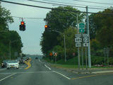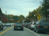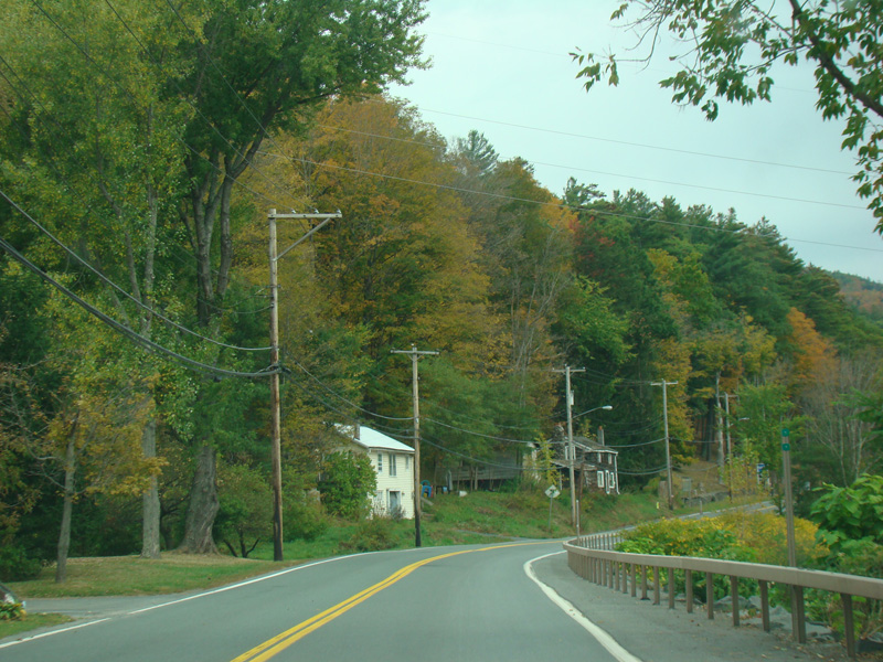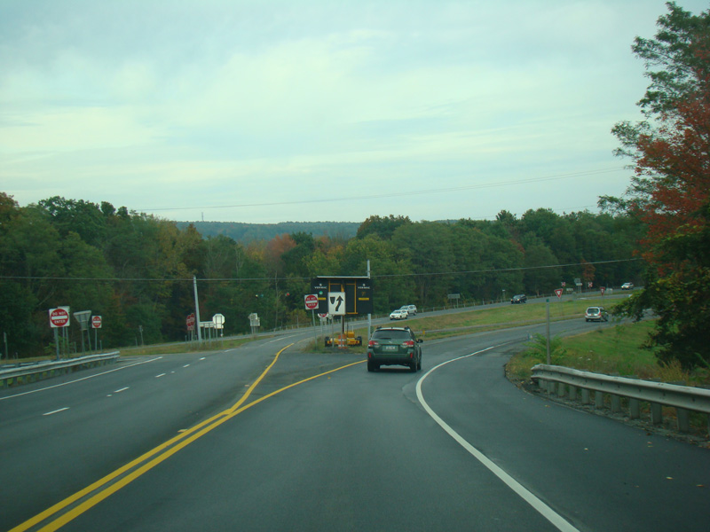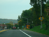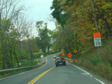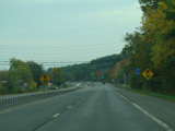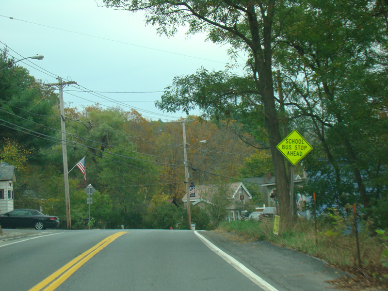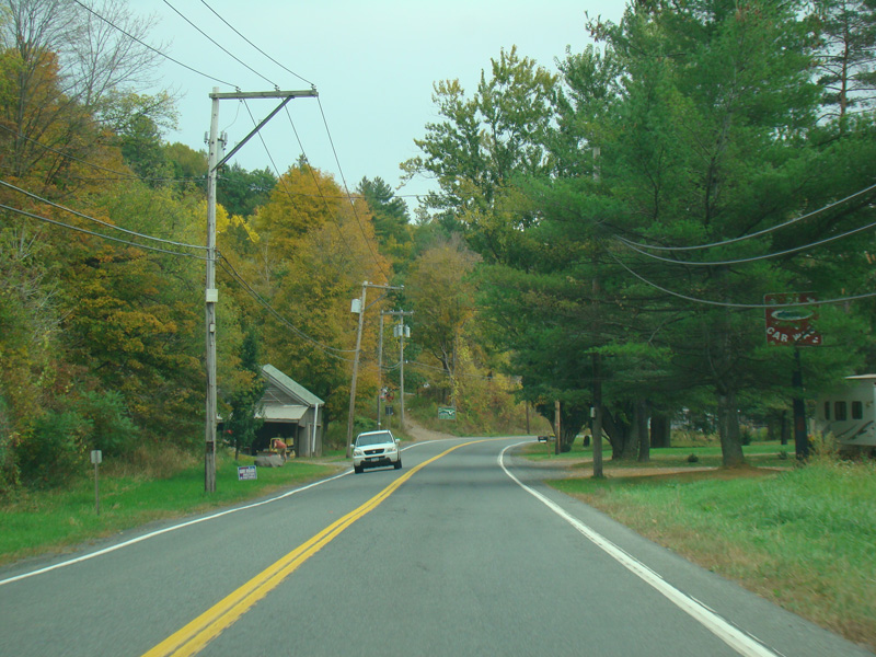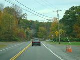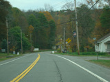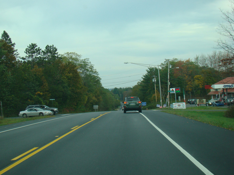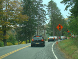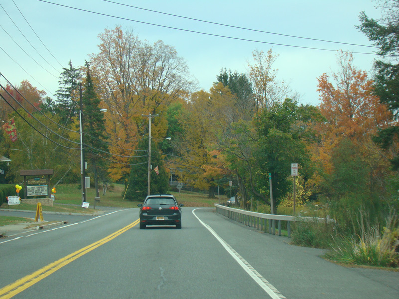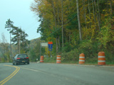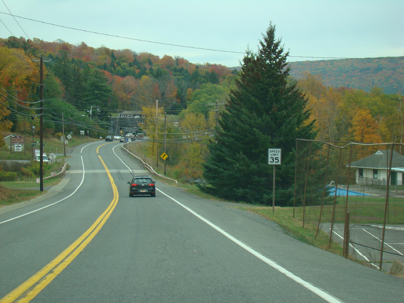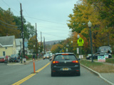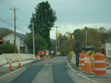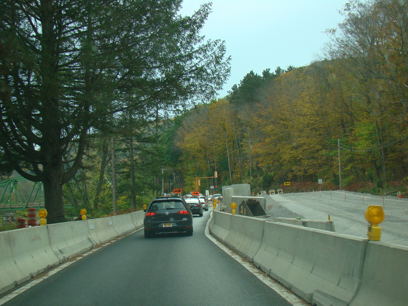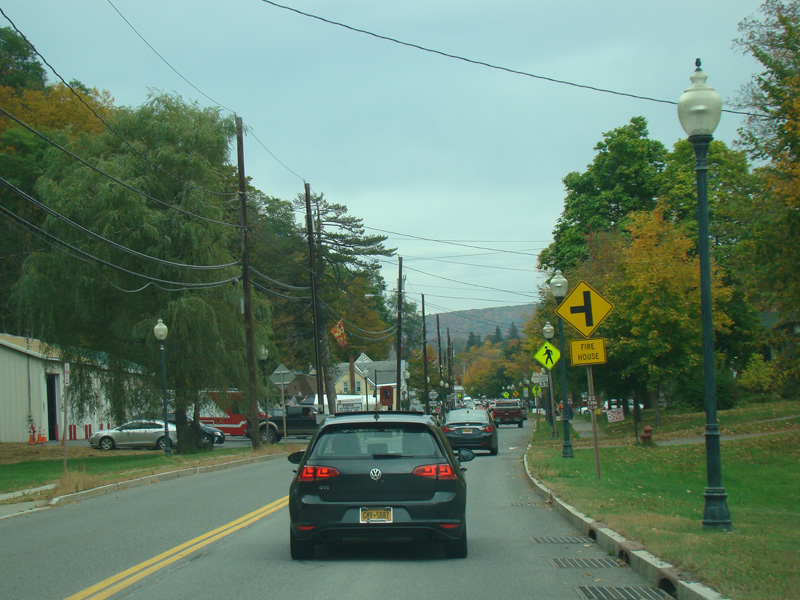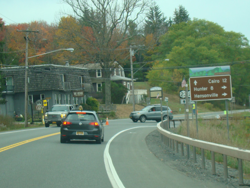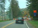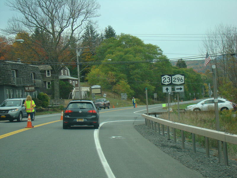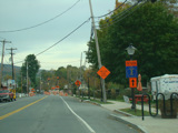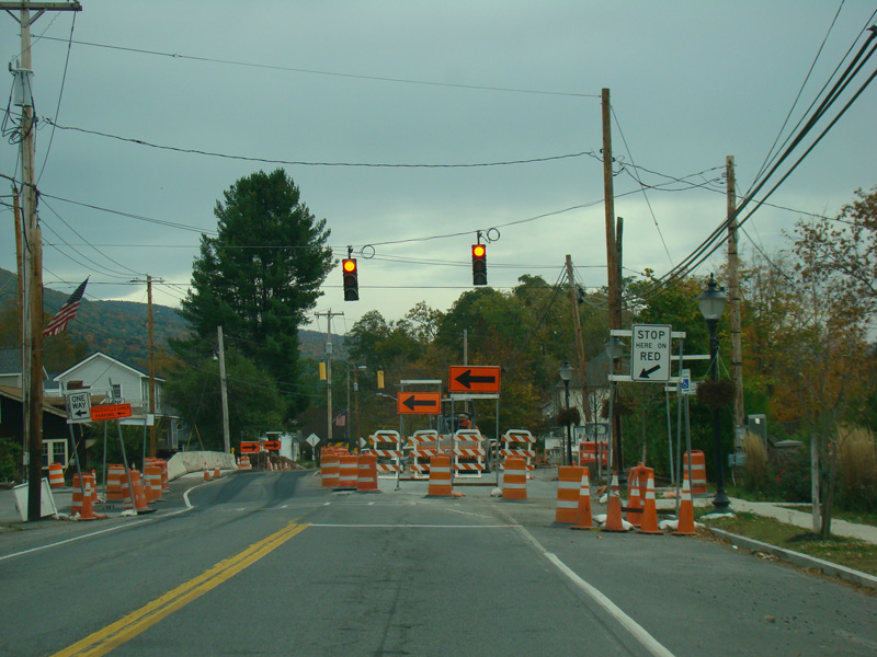 In the downtown area of Prattsville, NY 23 is known as Main Street. There is a third construction zone with a single lane controlled by a temporary traffic light.