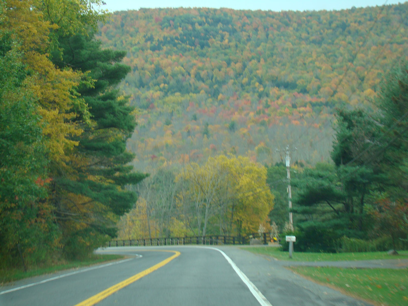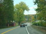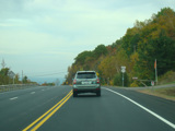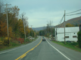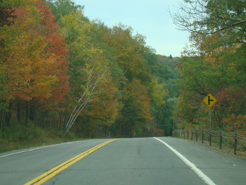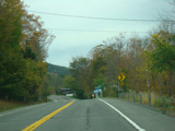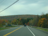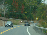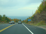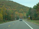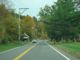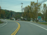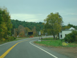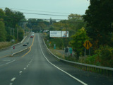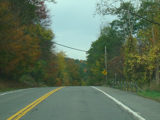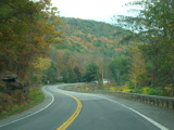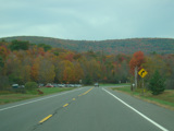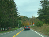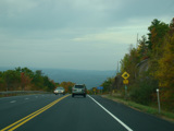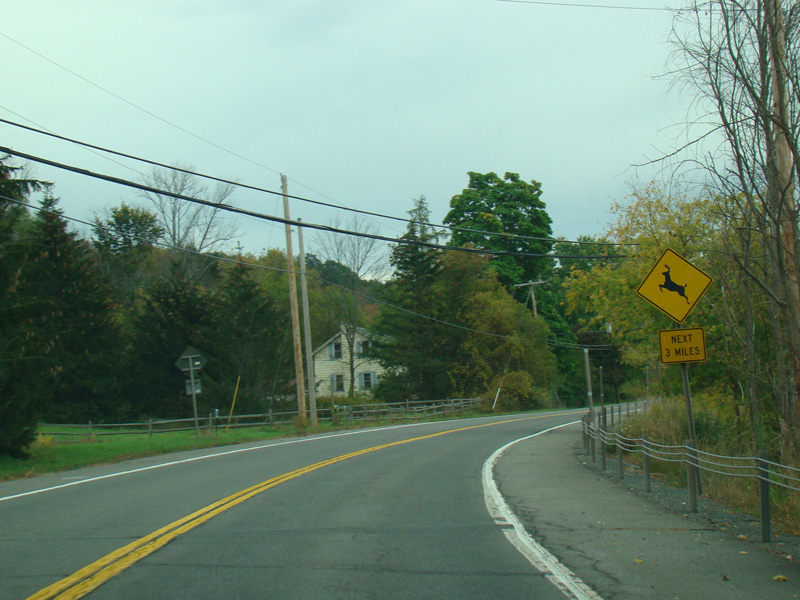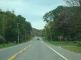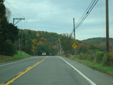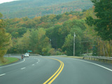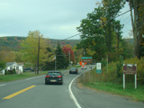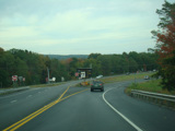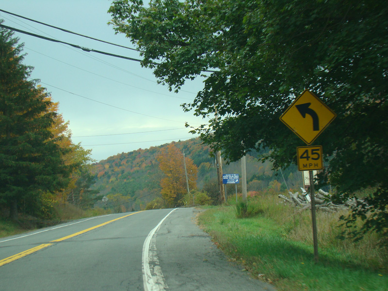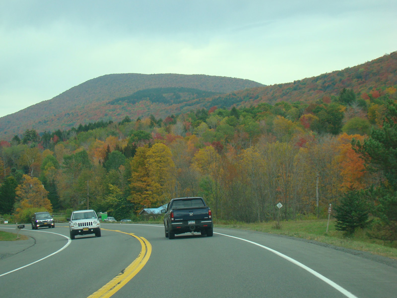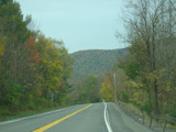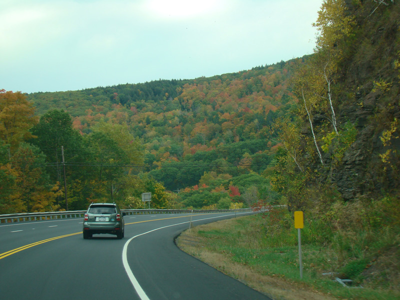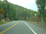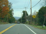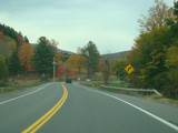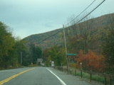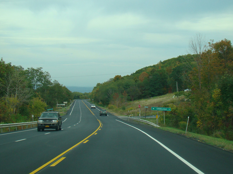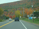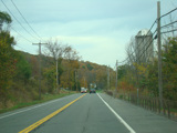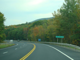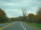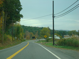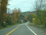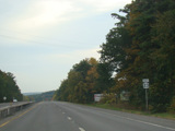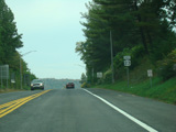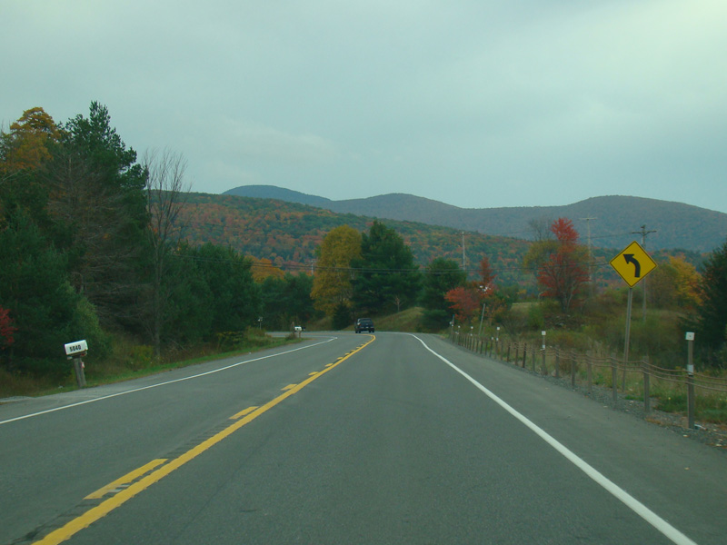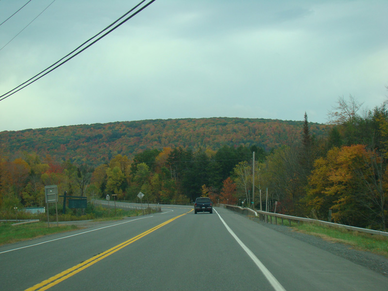 Welcome to the Town of Durham! NY 23 gets a second westbound lane. It gradually descends down into the valley below over the course of several miles. There is a parking area with a scenic overlook on the left.