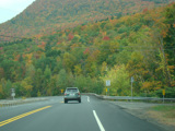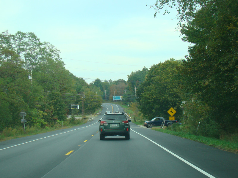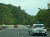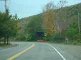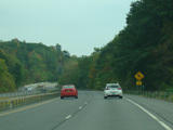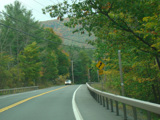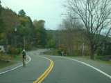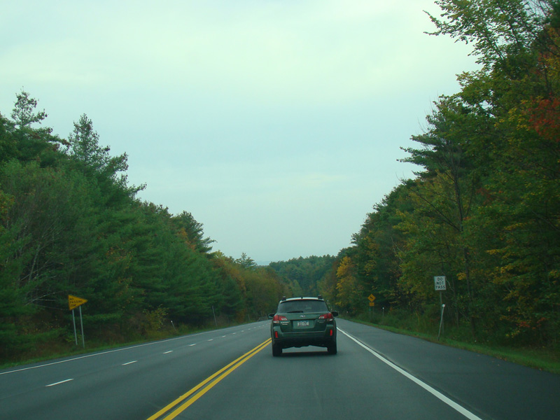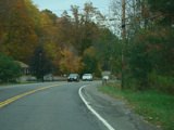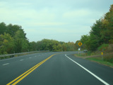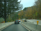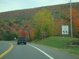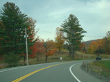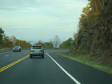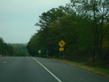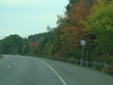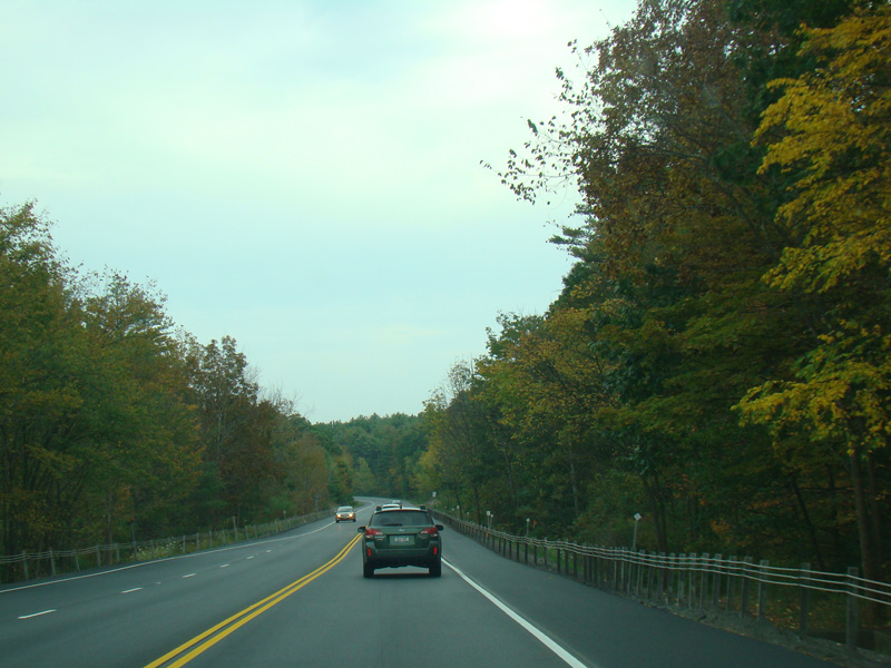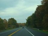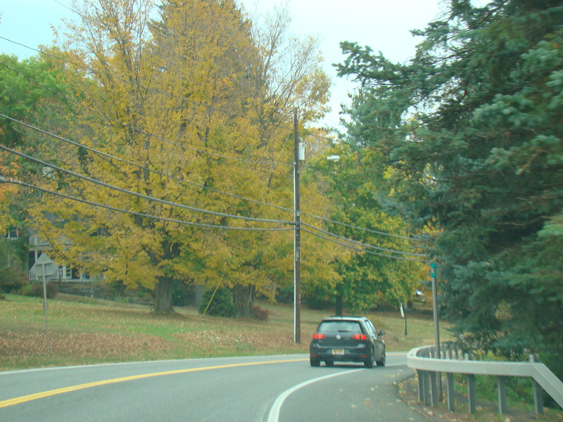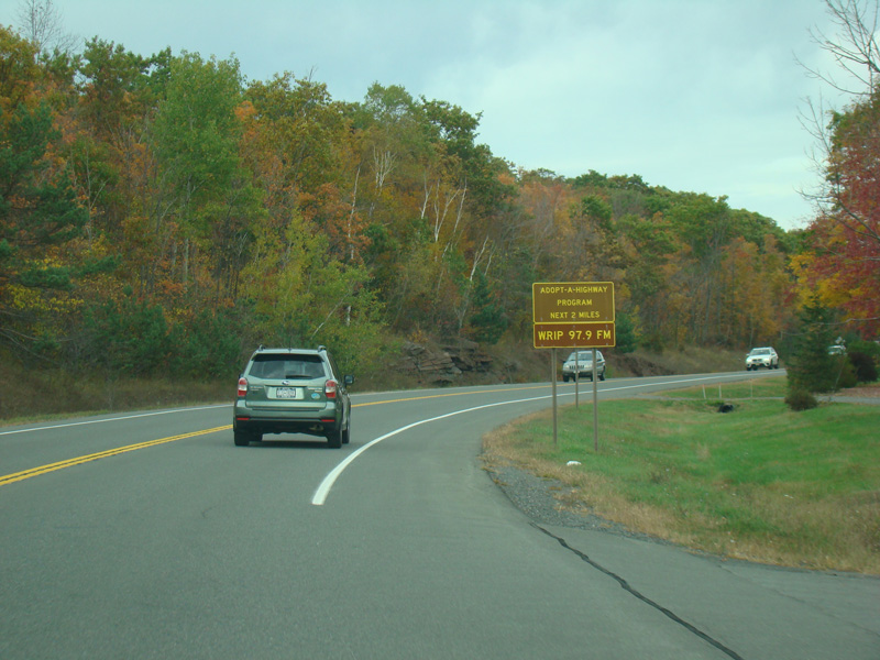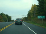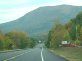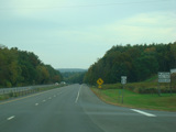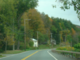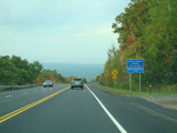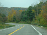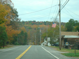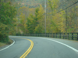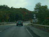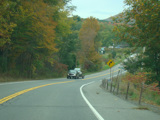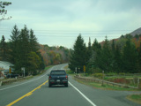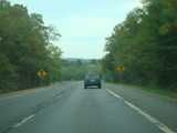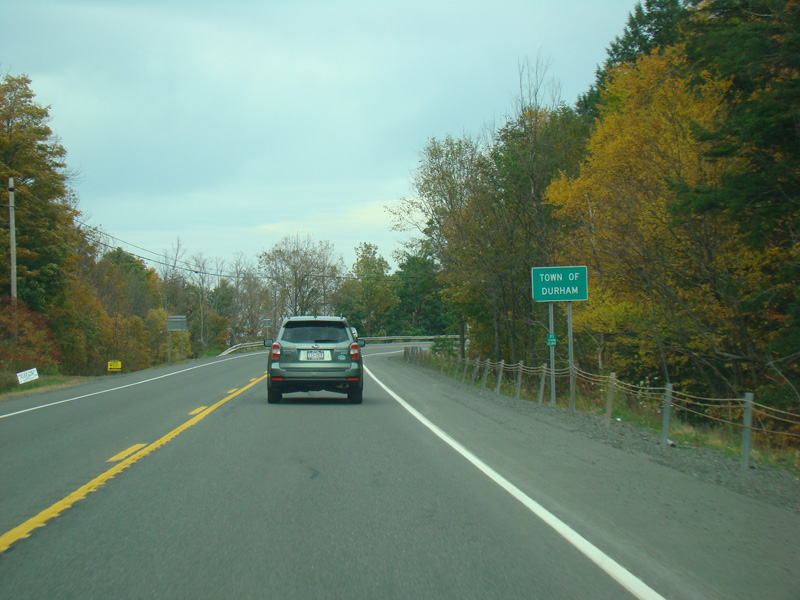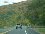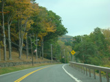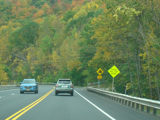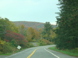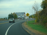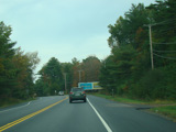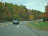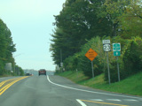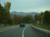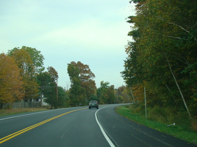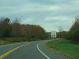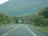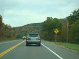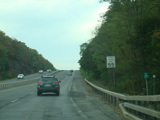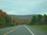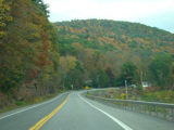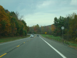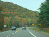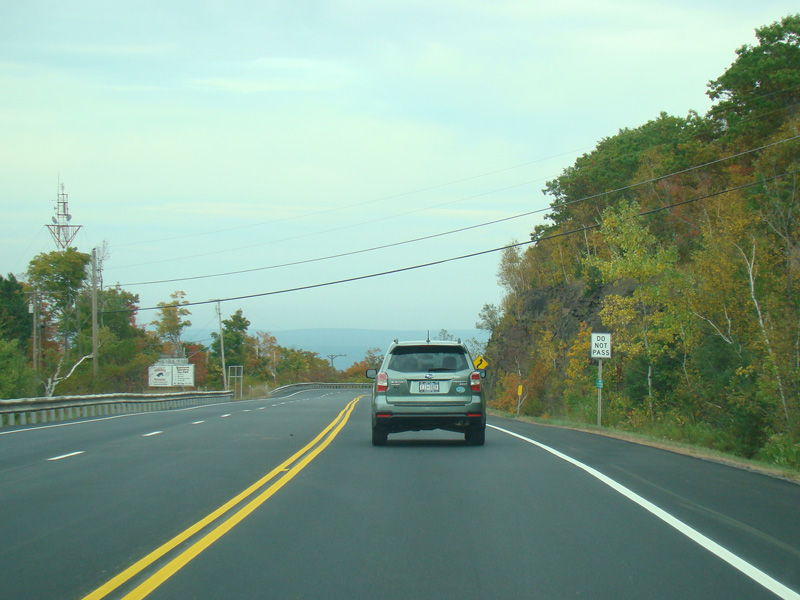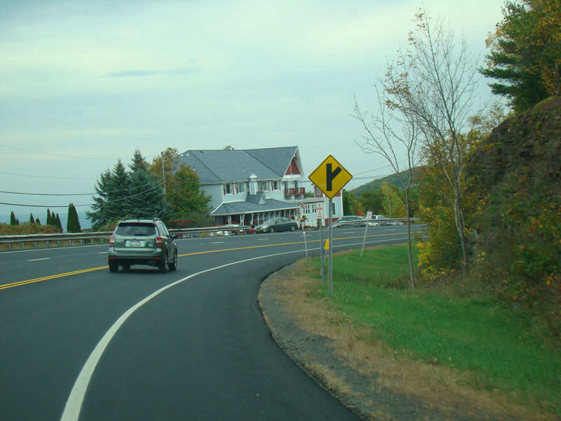 Welcome to the Town of Durham! NY 23 gets a second westbound lane. It gradually descends down into the valley below over the course of several miles. There is a parking area with a scenic overlook on the left.