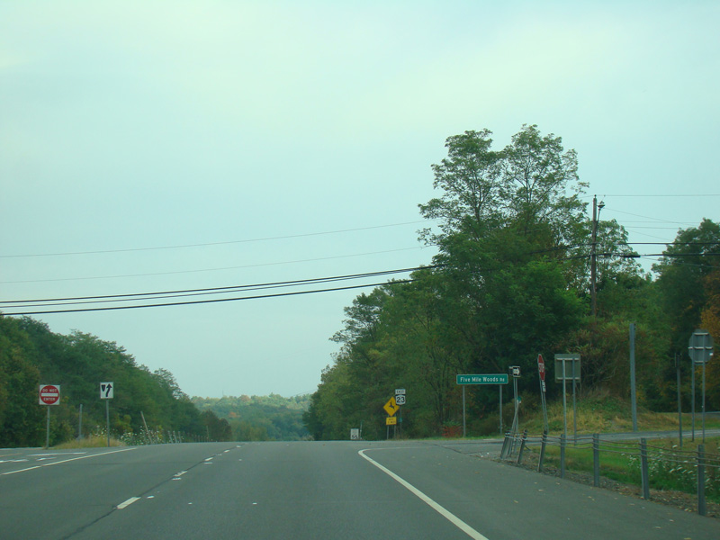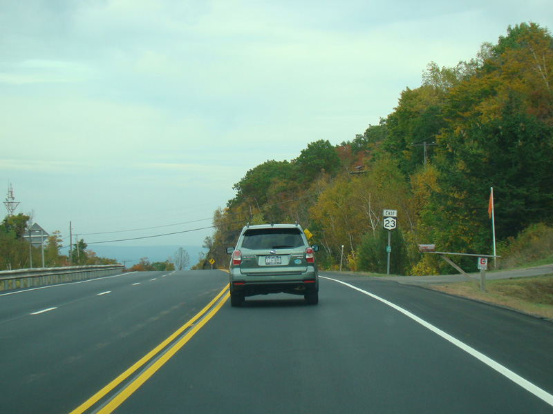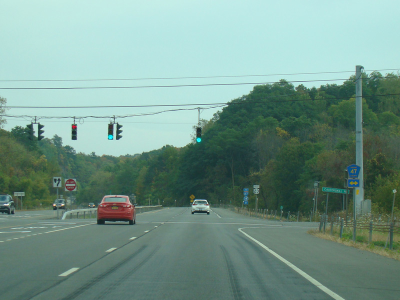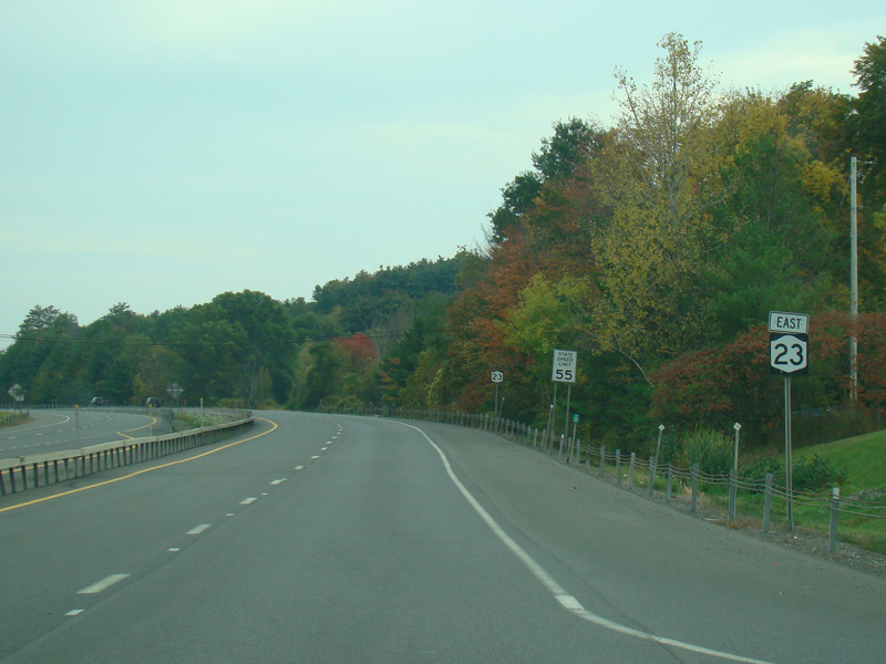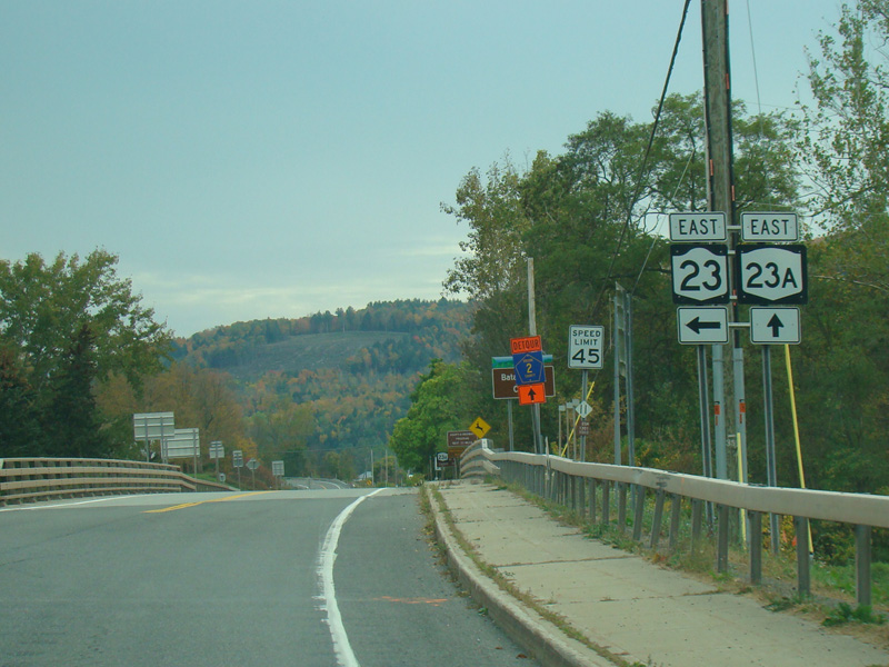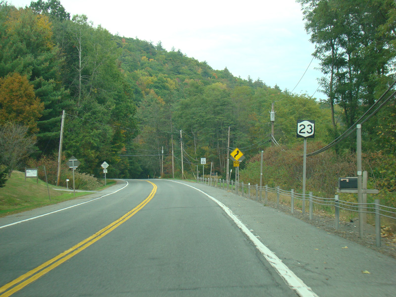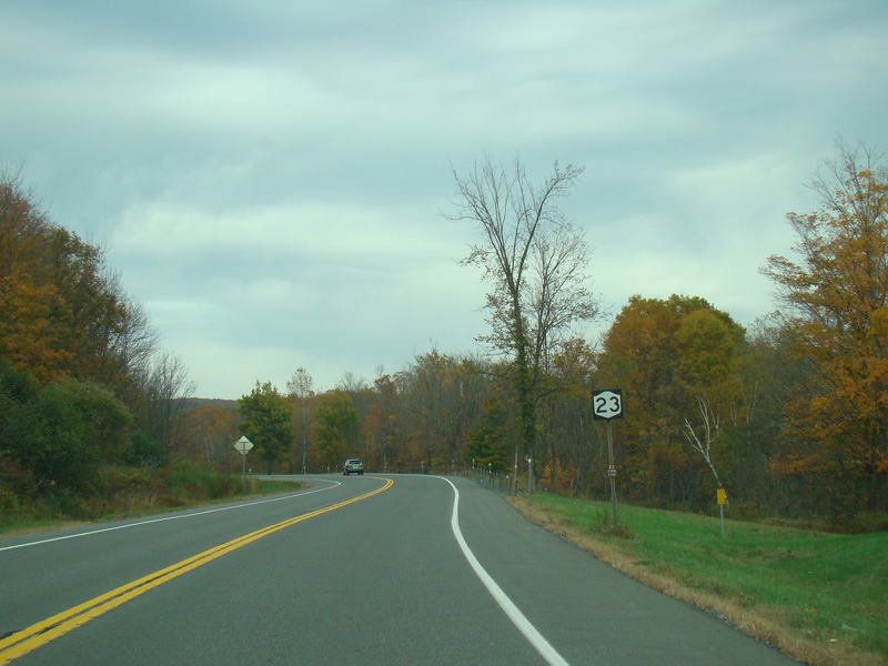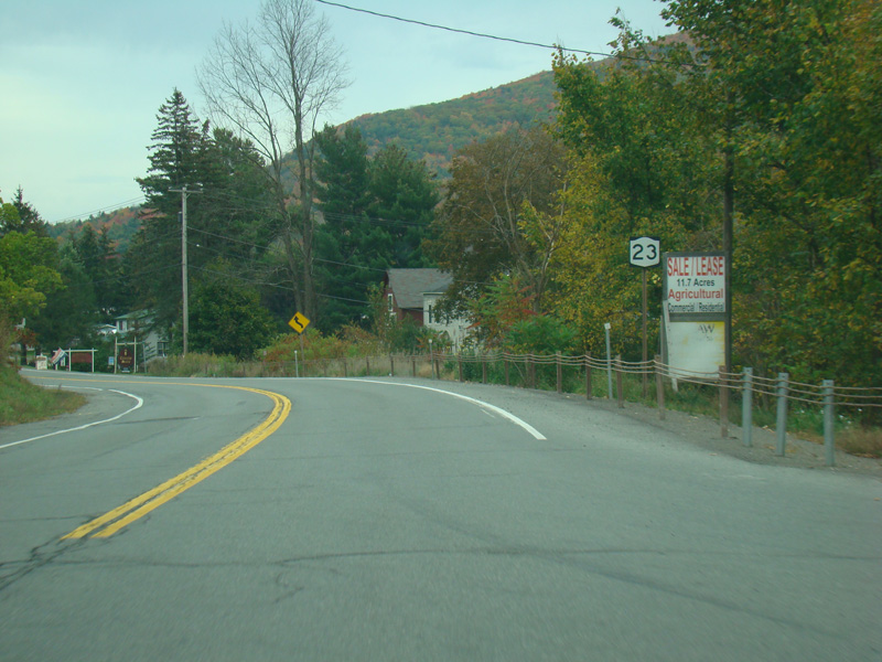 Turn left here to stay on NY 23. NY 23A begins straight ahead.