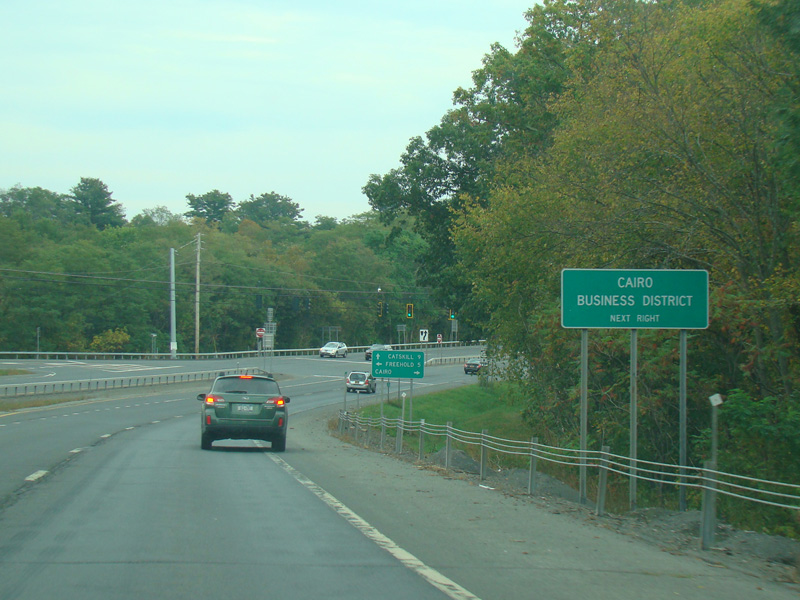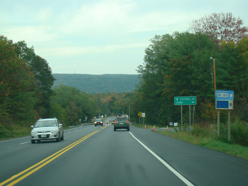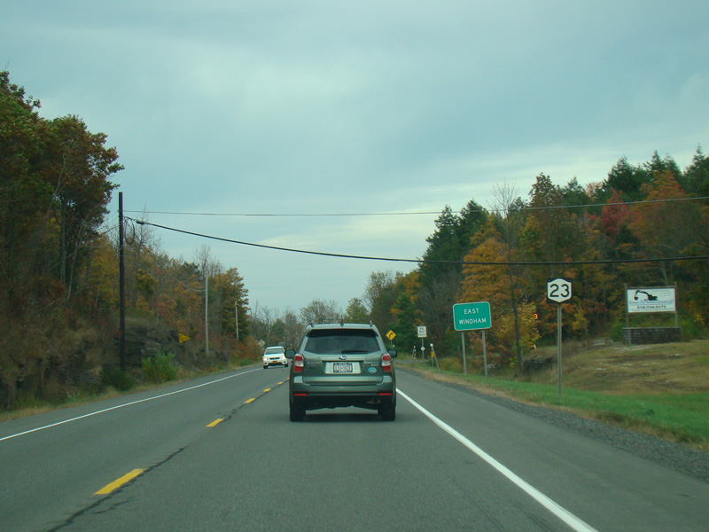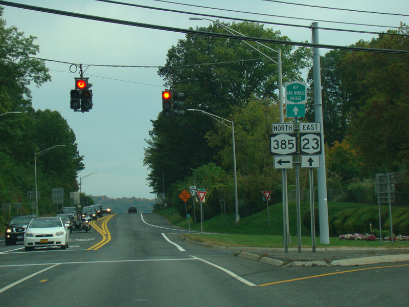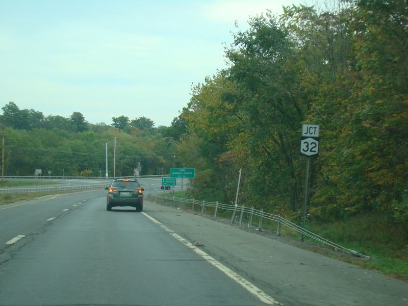 The two routes split. Turn right to go south on NY 32. Continue straight ahead to stay on NY 23.