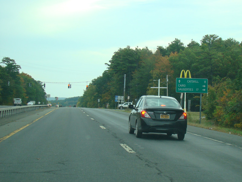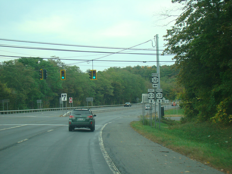 There is a traffic light at NY 32. Turn left to go north. Continue straight ahead to go south and to stay on NY 23.