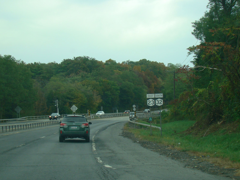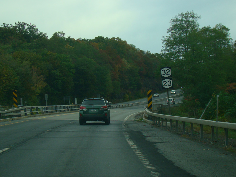 NY 32 is multiplexed with NY 23. There is a small bridge over the Shingle Kill.