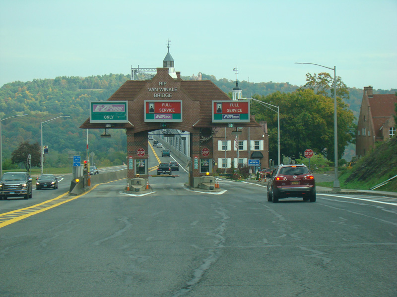 There is a tollbooth where all motorists must pay a toll before crossing the Rip Van Winkle Bridge.