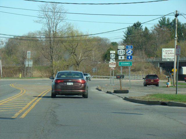 NY 233 is a north/south route extending from Clinton to Rome. It begins at NY 12B and extends north to an interchange with the Utica-Rome Expressway (NY 49/NY 365) near its western end, where it becomes Martin Street. The entire length is a two-lane undivided road with traffic lights.