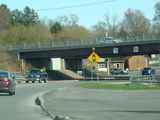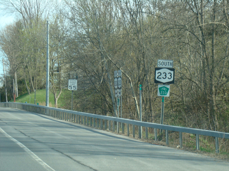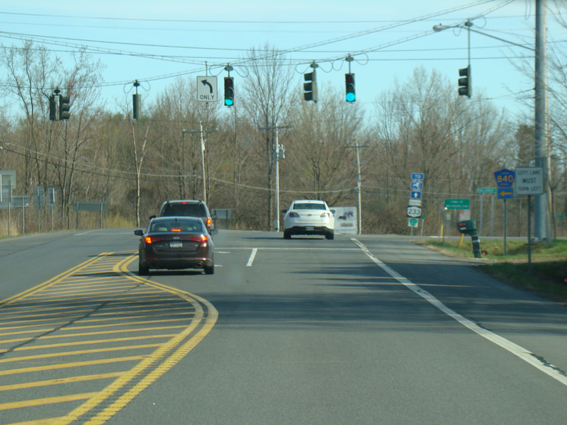 NY 233 begins at an interchange with the Utica-Rome Expressway (NY 49/NY 365) in Rome. Rome-Oriskany Road (NY 69) is to the left at the traffic light after the underpass.
