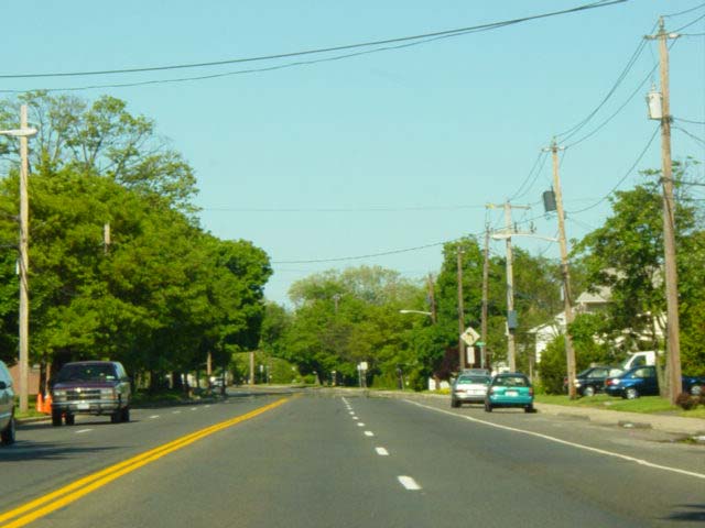 These pictures show Conklin Street in Farmingdale as it appeared in 2004. At the time, it widened to four lanes upon leaving the downtown area. It now remains a two-lane road with a center lane for turns.