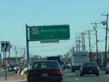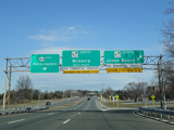 These overhead signs used to mark the interchange with the Meadowbrook Parkway. They have been replaced with ground-mounted signs.