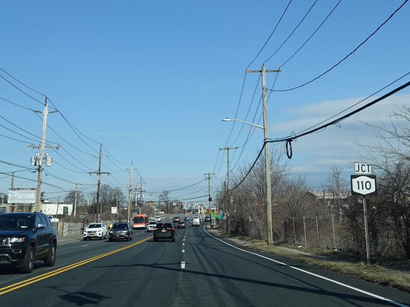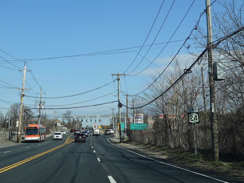 There is a traffic light at Broad Hollow Road (NY 110). Turn left to go north or right to go south. NY 24 ends here. Conklin Street continues straight ahead as a local street.