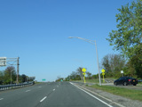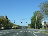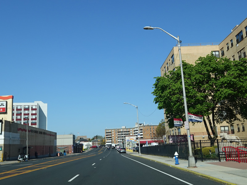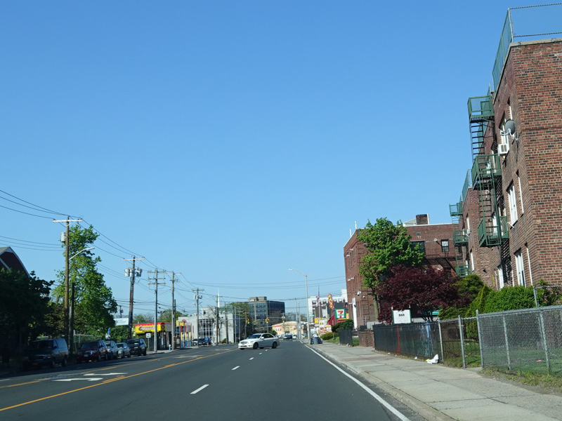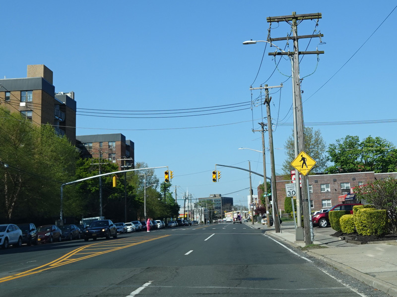 There are traffic lights at Clinton Road (CR 1), Washington Avenue (CR 7A), Main Street, and Franklin Avenue (CR 5A).
