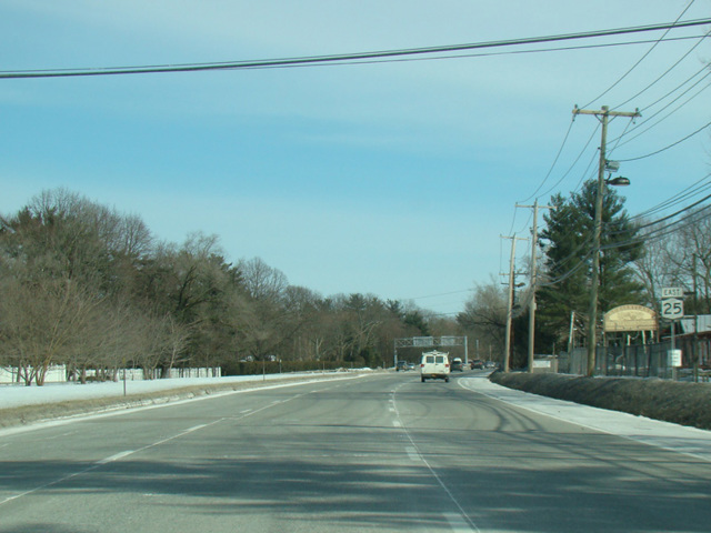 NY 25 leaves Queens Boulevard at Hillside Avenue and runs to the east along Hillside Avenue. NY 25 leaves Hillside Avenue at Braddock Avenue and is routed along Braddock Avenue. (Hillside Avenue east of this point is designated NY 25B.) Braddock Avenue runs to the southeast until the Queens-Nassau county line, where it ends at Jericho Turnpike. Jericho Turnpike runs to east through Nassau and western Suffolk. In Smithtown, NY 25 and NY 25A are multiplexed as Main Street. When they split, NY 25 is called Middle Country Road. It keeps this name until Riverhead. After Riverhead, NY 25 is called Main Road and it runs along the North Fork as a small two-lane road. It ends at the ferry terminal at Orient Point, the easternmost point on the North Fork.