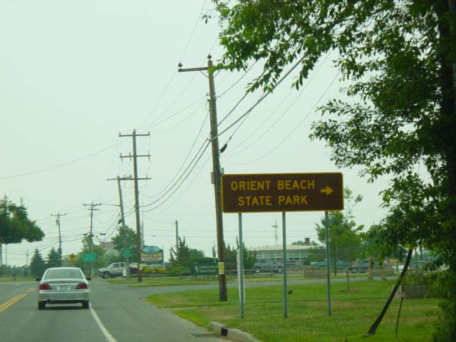These signs used to mark the eastern terminus of NY 25 in Orient Point. They have all been replaced.