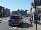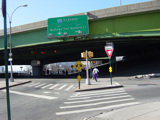 There is an exit from the main road to the service road for Junction Boulevard and the Long Island Expressway (I-495). Junction Boulevard begins on the right in this area, but there is no traffic light or oversized street name sign because the first block of it is a northbound one-way street.