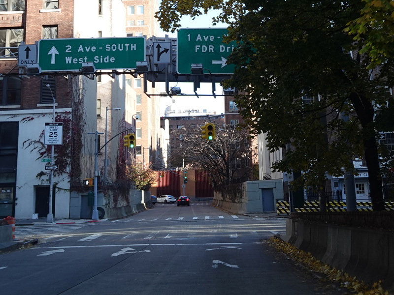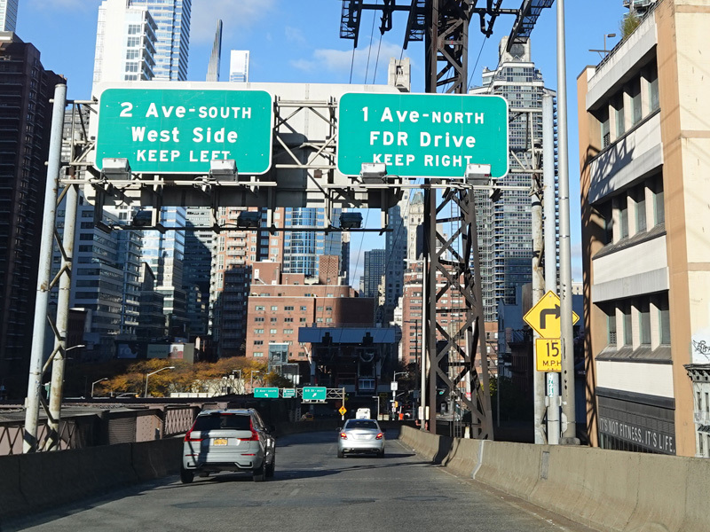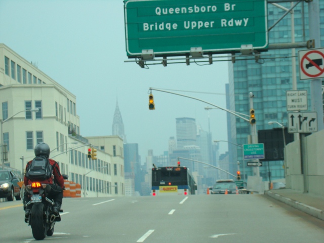 Turn right at this traffic light for the upper roadway of the Queensboro Bridge. Thomson Avenue continues straight ahead as a local street and ends a few blocks ahead at Jackson Avenue (NY 25A).