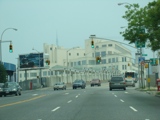 Thomson Avenue begins at Queens Boulevard and runs west through Queens as four-lane undivided road.