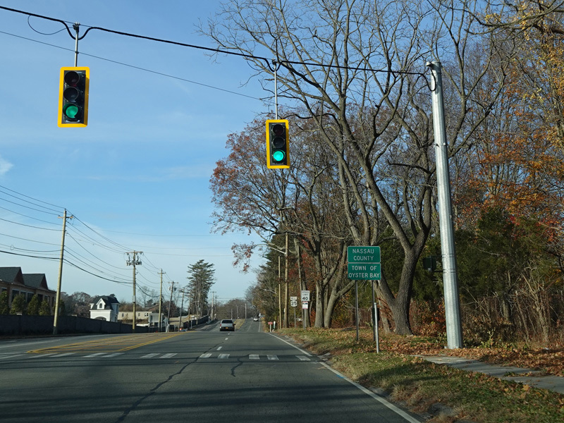 There is a traffic light at CR 9. Turn onto Jackson Avenue to go north or left onto South Oyster Bay Road to go south.