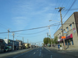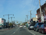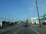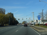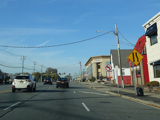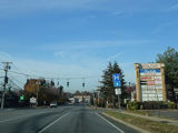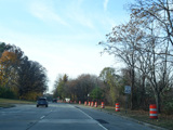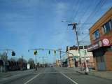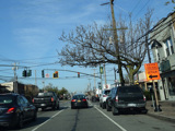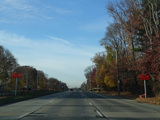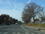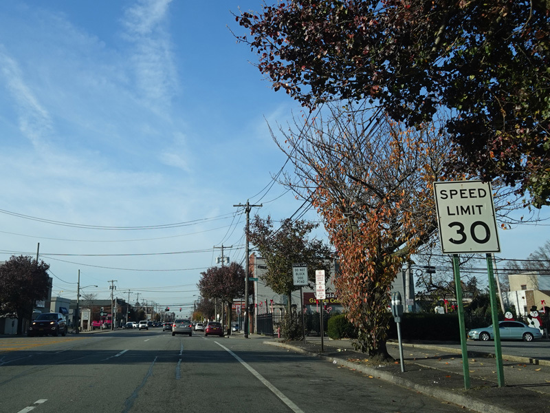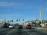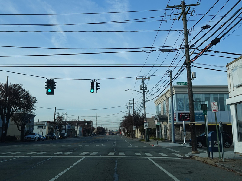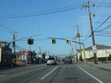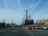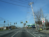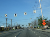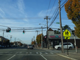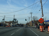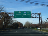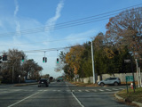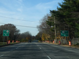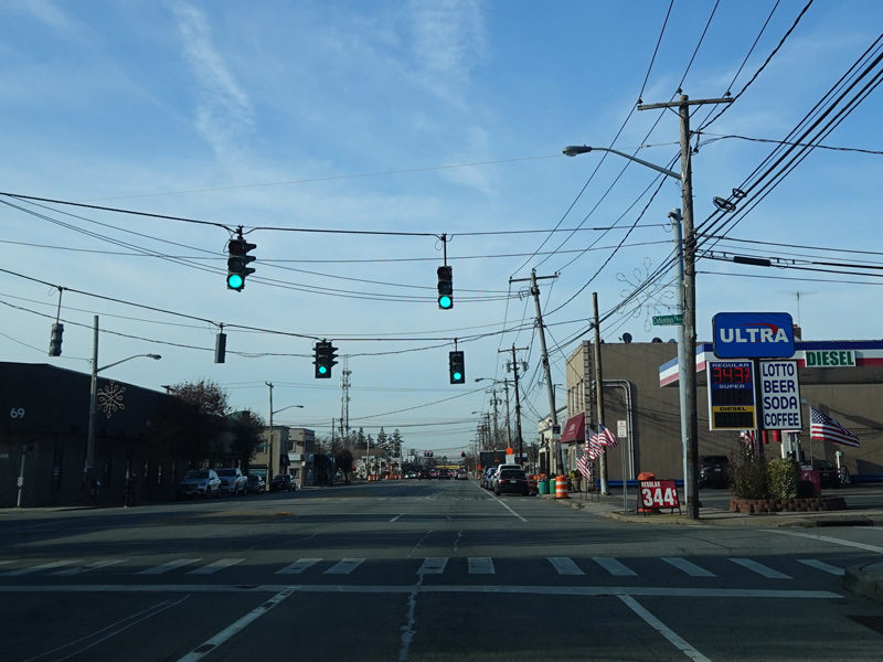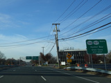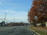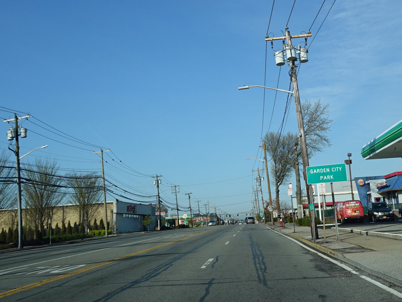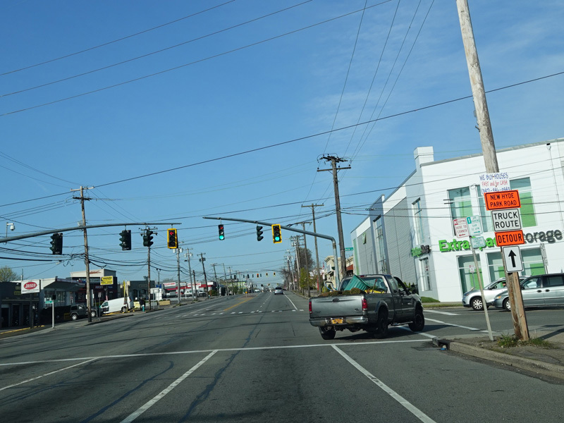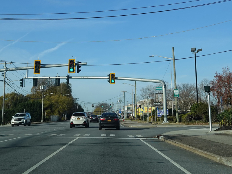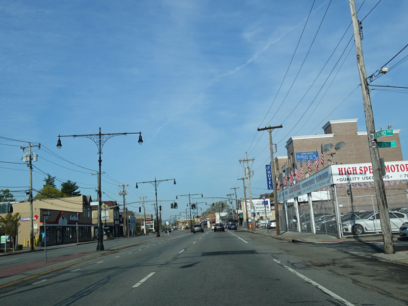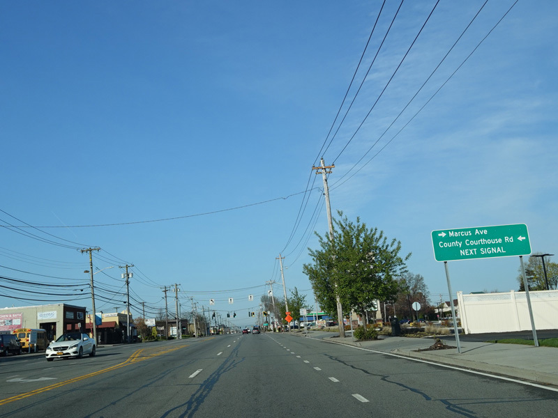 In this area, Jericho Turnpike runs along the New York City line. The left side of the road is Nassau County, while the right side is Queens. Little Neck Parkway begins on the right at a traffic light, but once again there isn't particularly prominent signage.