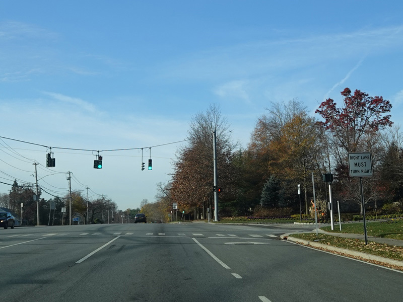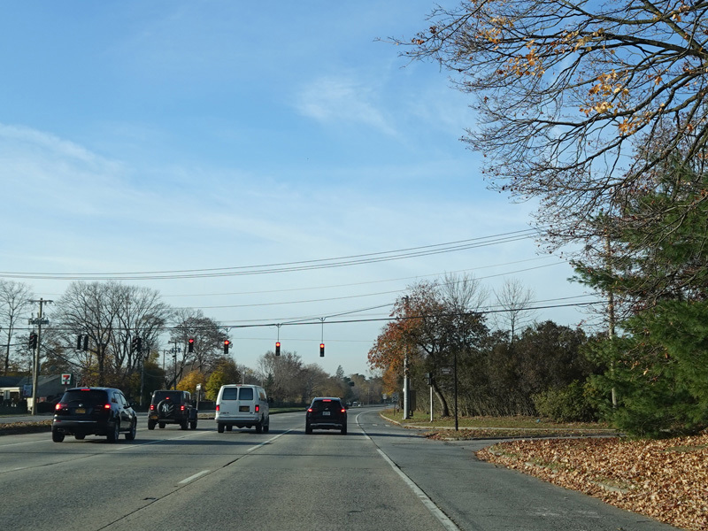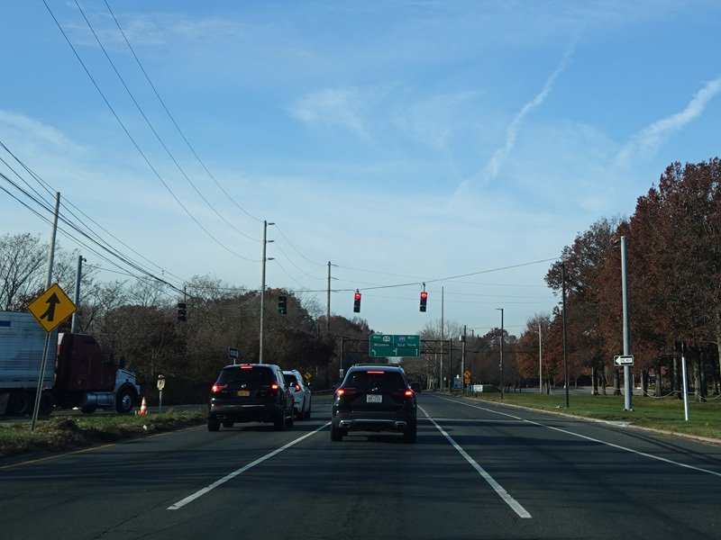 There is a traffic light at Glen Cove Road (CR 1). Turn right to go north or left to go south.