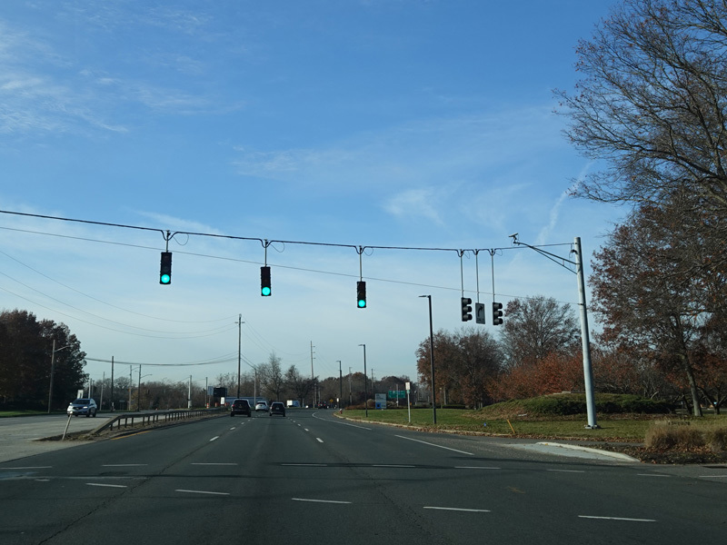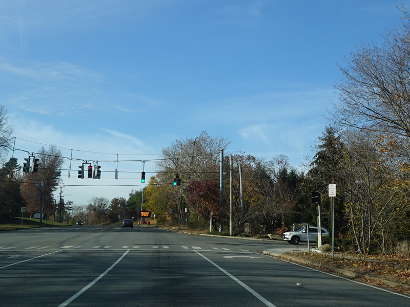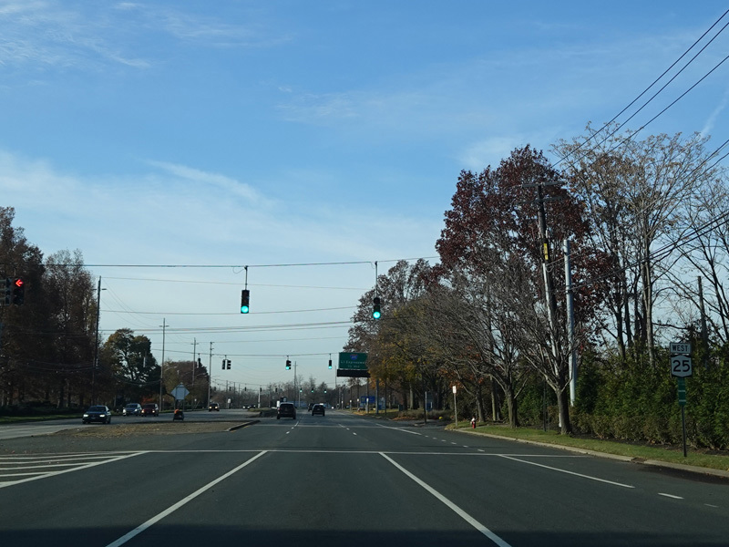 There is a traffic light at Roslyn Road (CR 7A). Turn right to go north or left to go south.