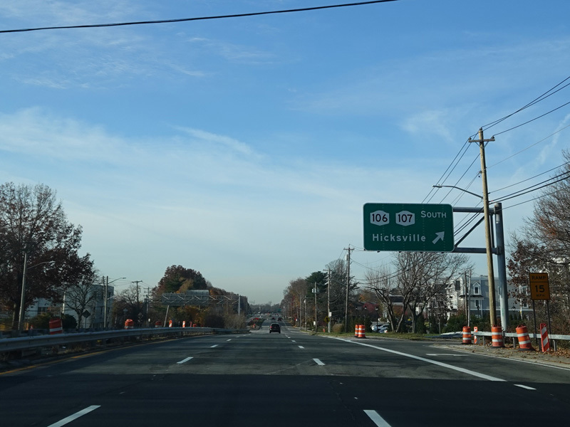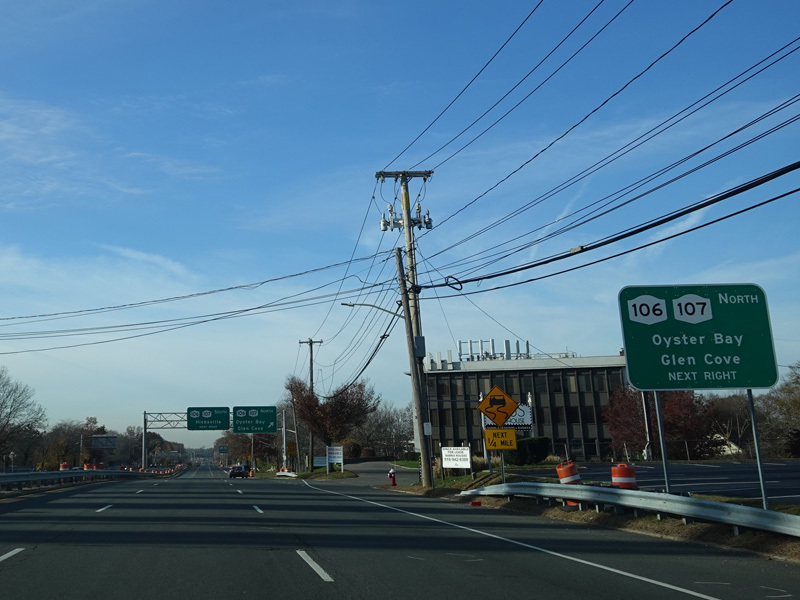 There is a grade-separated interchange with Broadway (NY 106/NY 107).