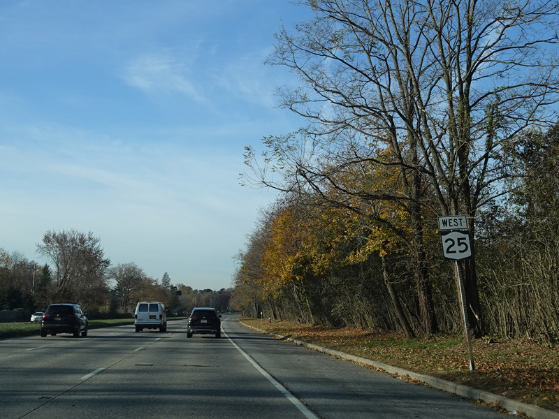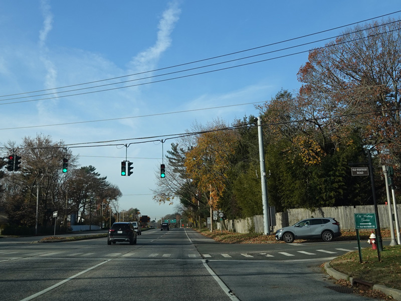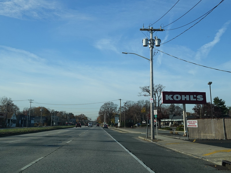 Jericho Turnpike continues through Old Westbury as a six-lane divided highway.