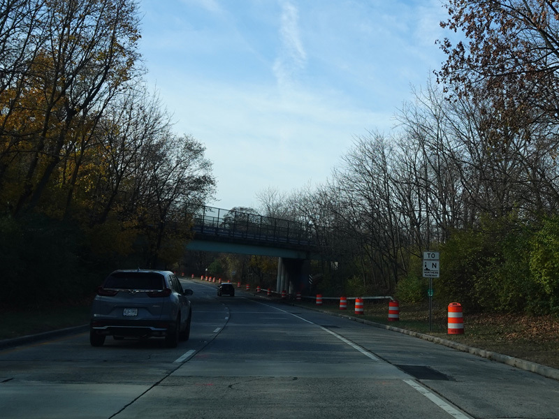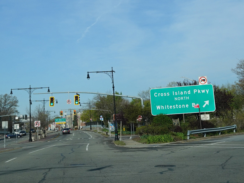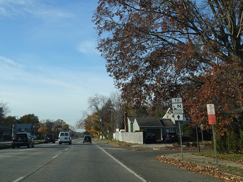 Immediately after the intersection with Glen Cove Road, there is an entrance to the Northern Parkway west on the right.