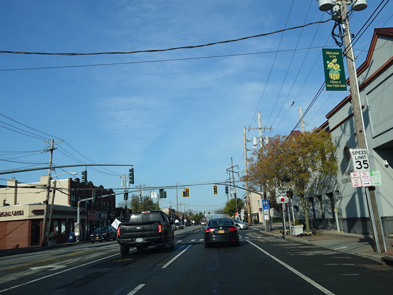 Welcome to the Village of New Hyde Park! There are traffic lights at New Hyde Park Road (CR 5B) and Lakeville Road (CR 11), but there isn't particularly prominent signage for either one.