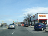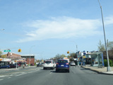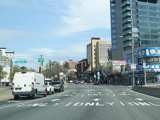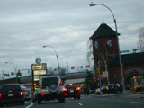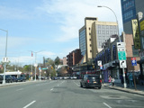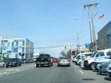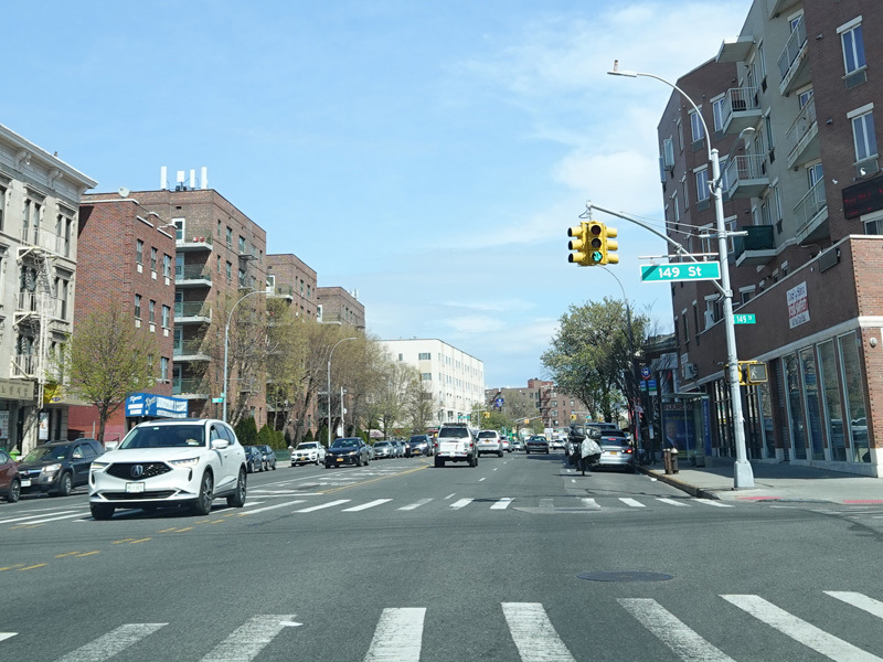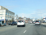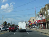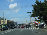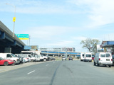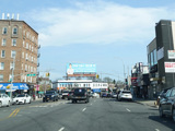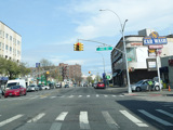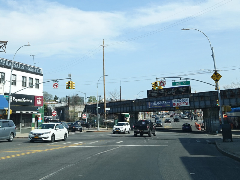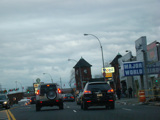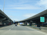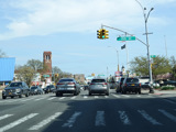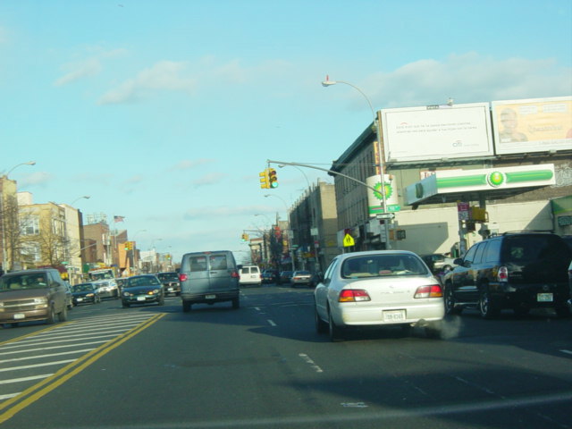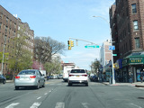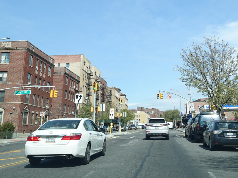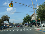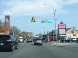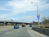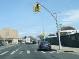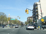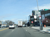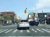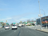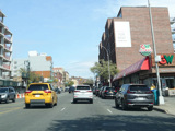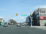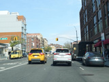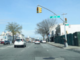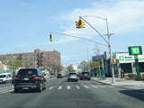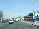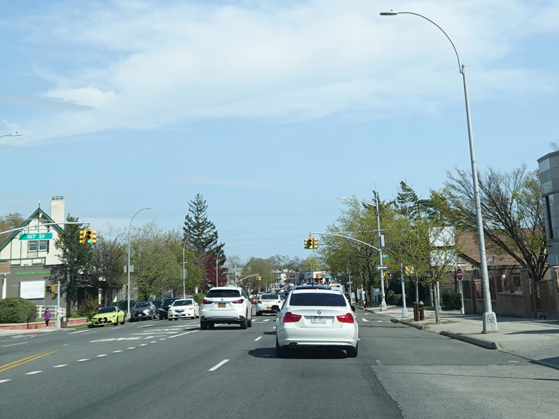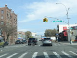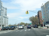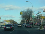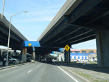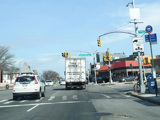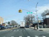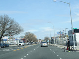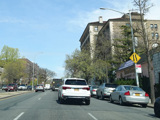 Northern Boulevard comes back down to the ground level. The elevated highway in the middle is the ramp between the Grand Central Parkway and the Van Wyck Expressway (I-678).
