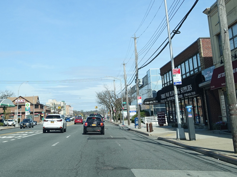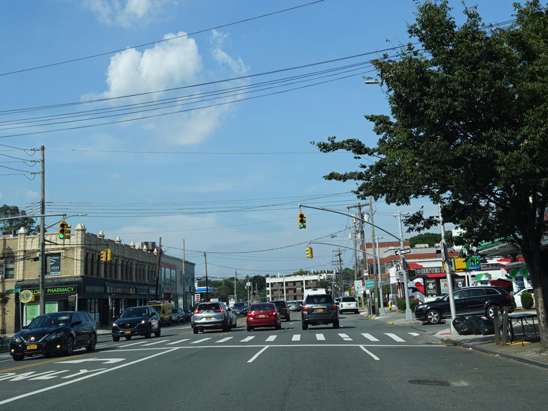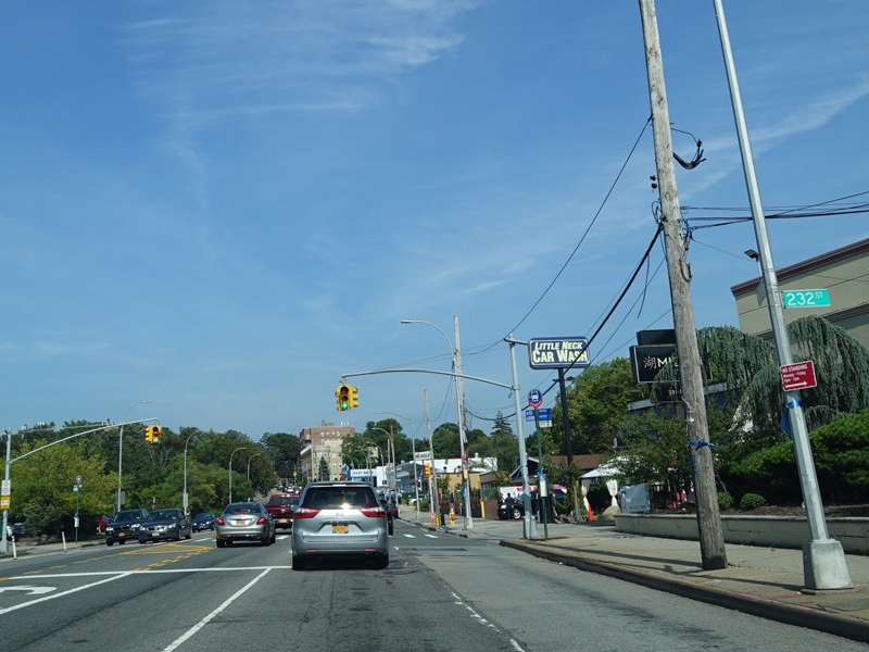 Northern Boulevard continues east through Douglaston and Little Neck. There is an oversized street name sign at Little Neck Parkway, the last major intersection in Queens.