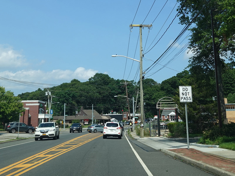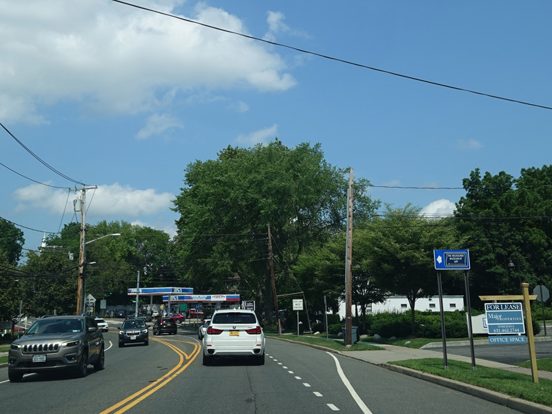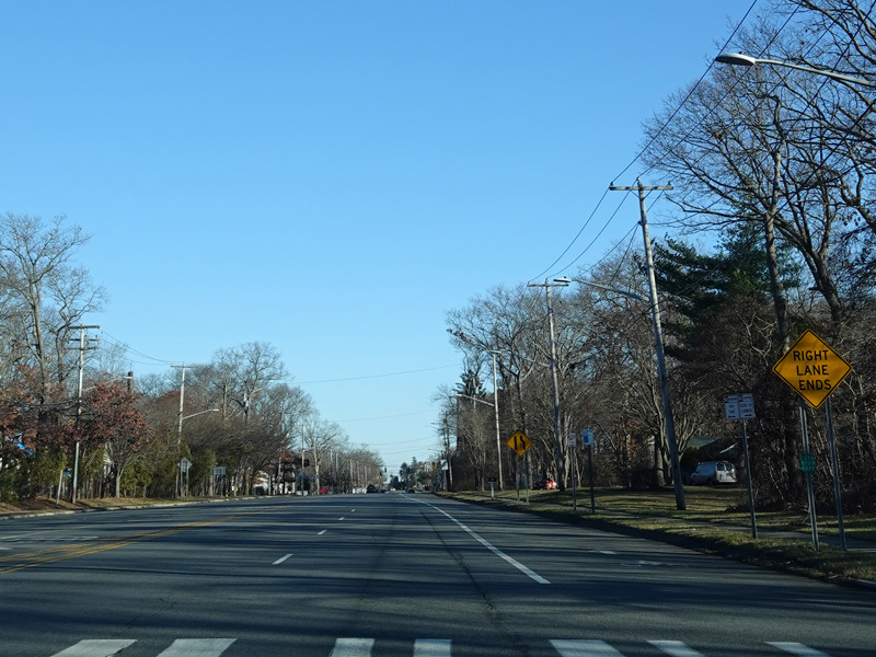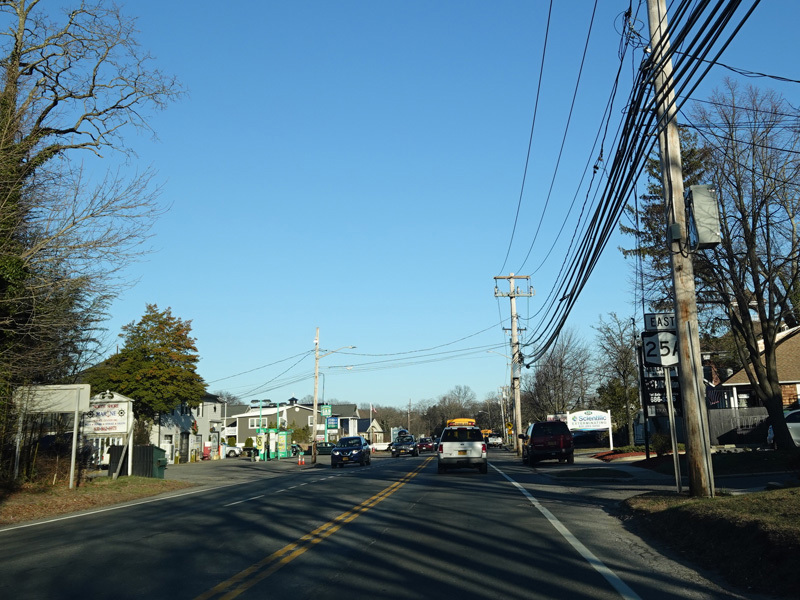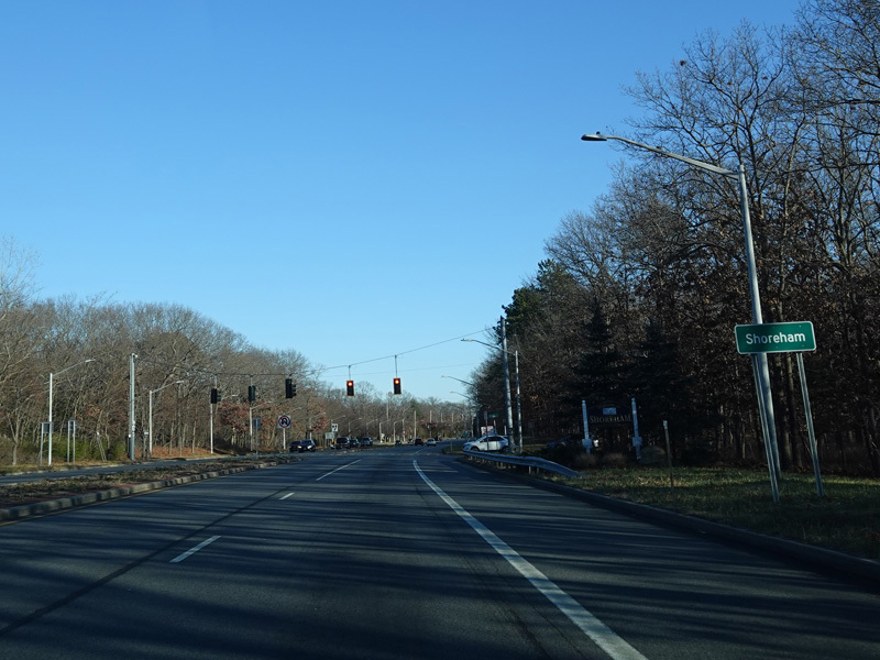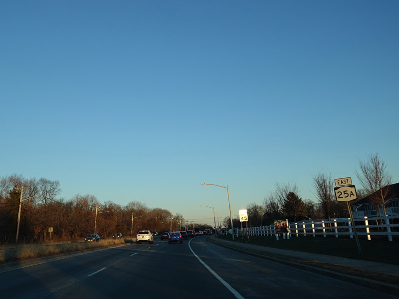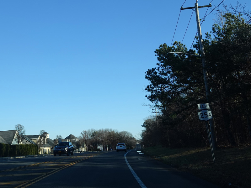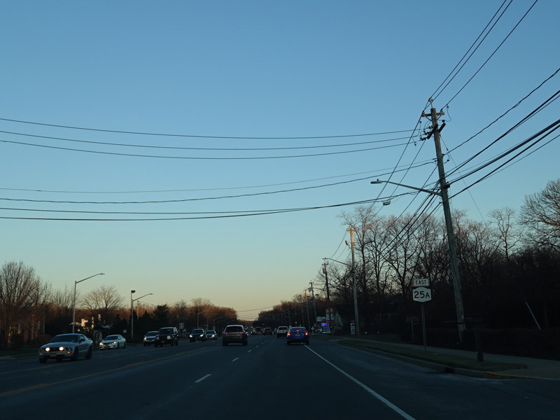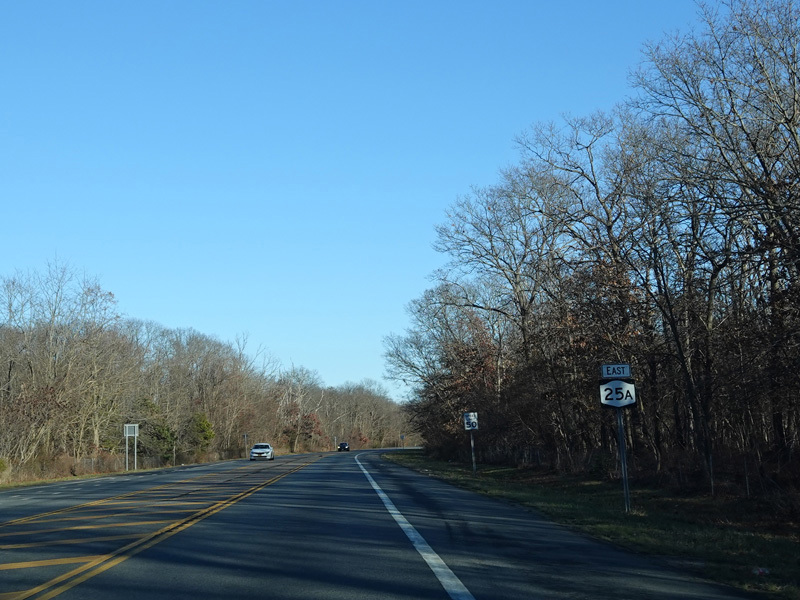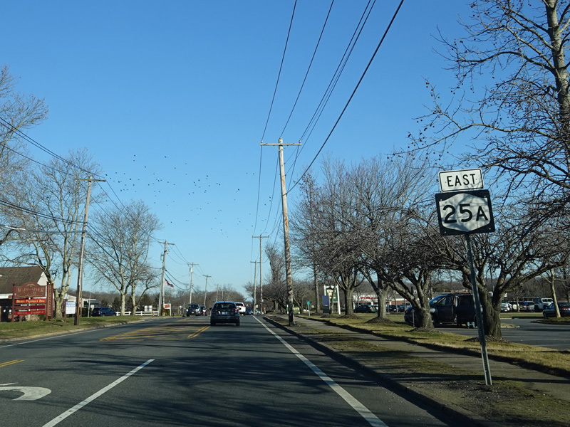 Skipping east to Mount Sinai, NY 25A merges with Nesconset Highway (NY 347) to form a four-lane undivided road.