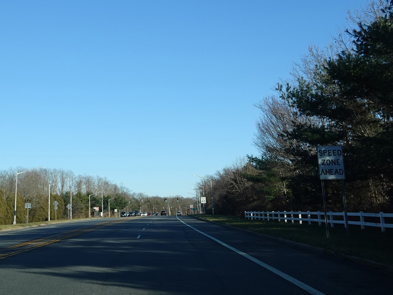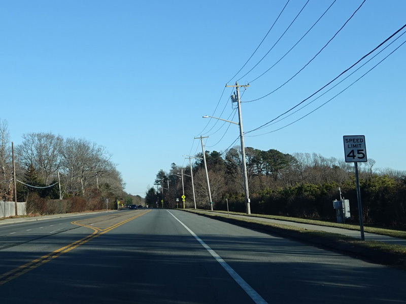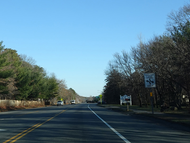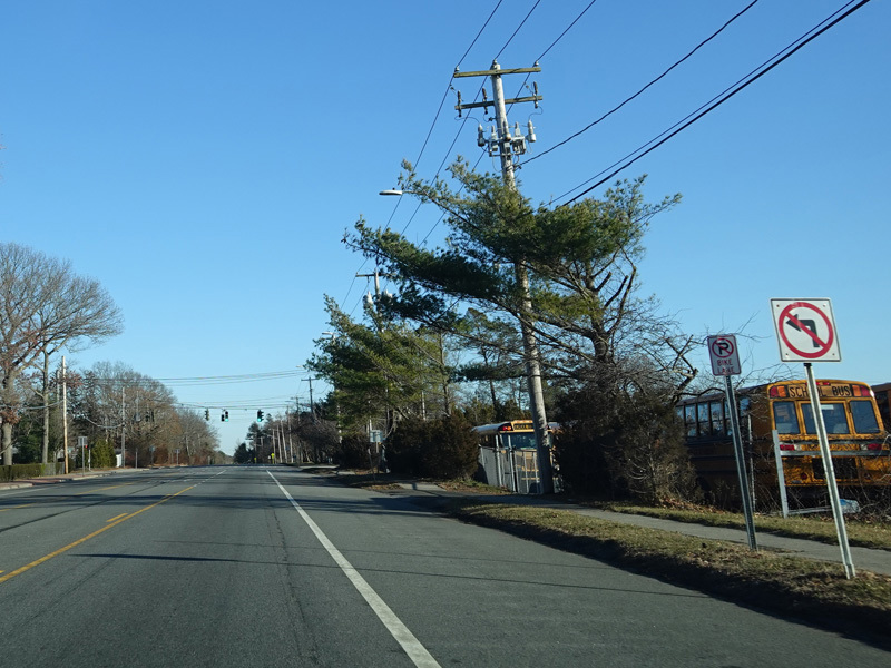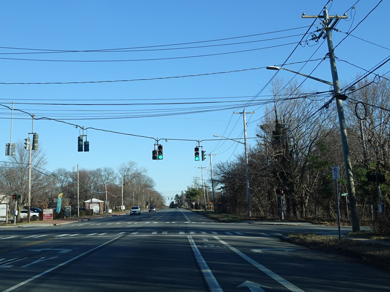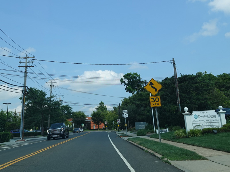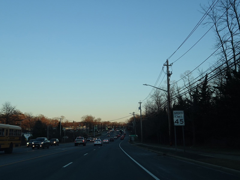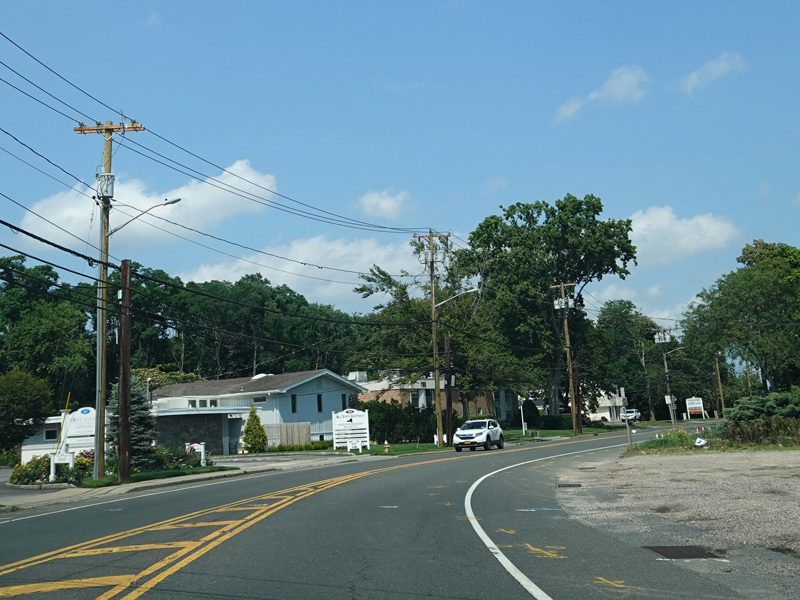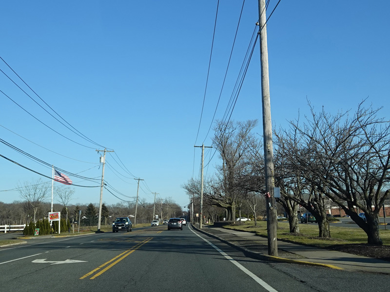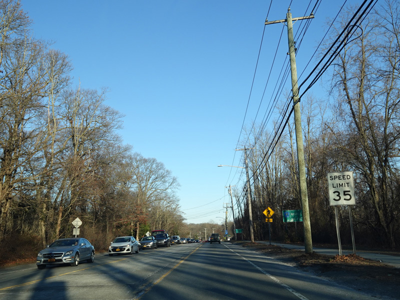 Skipping east to Mount Sinai, NY 25A merges with Nesconset Highway (NY 347) to form a four-lane undivided road.