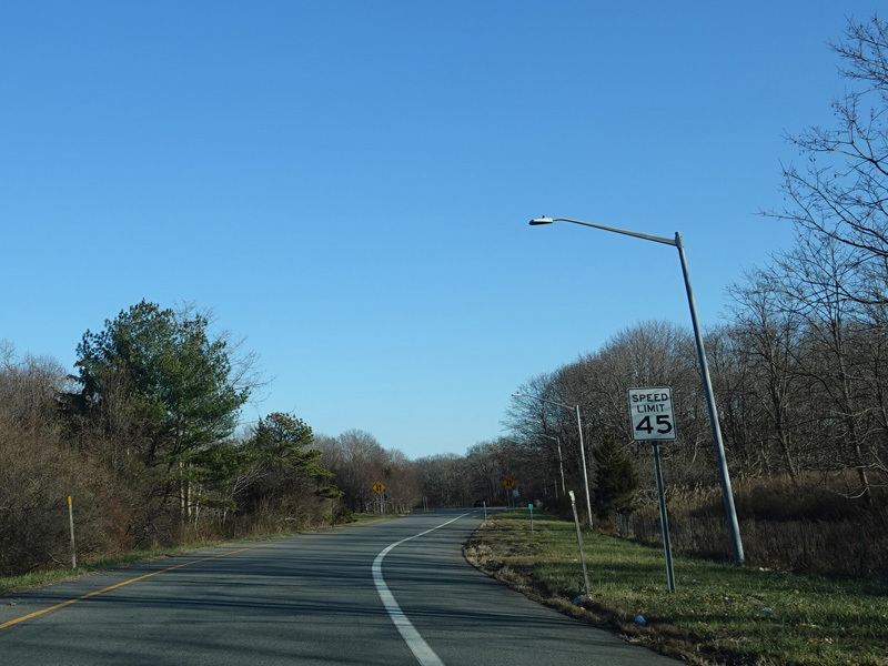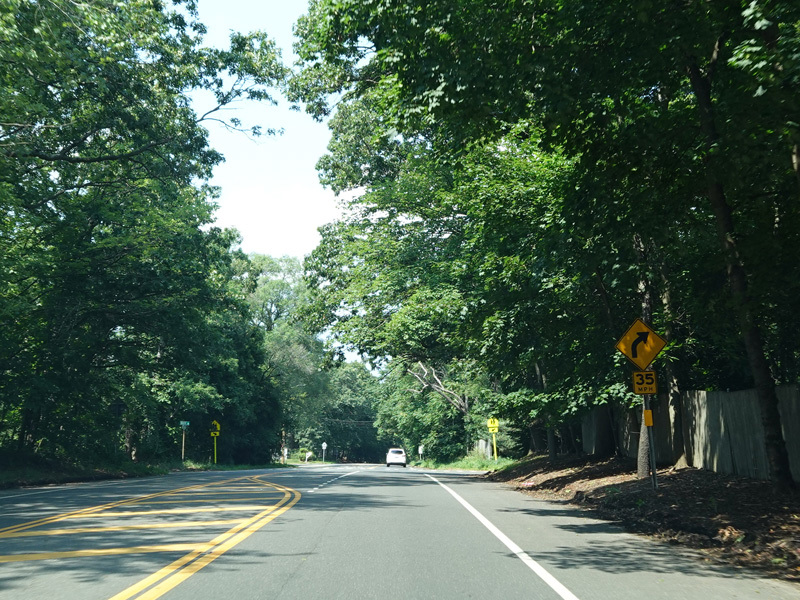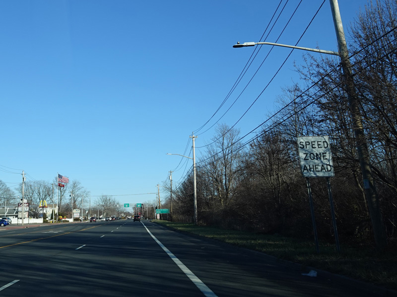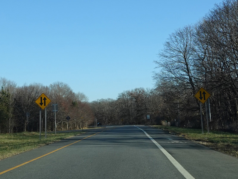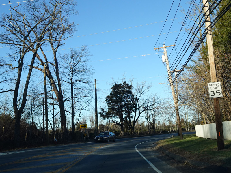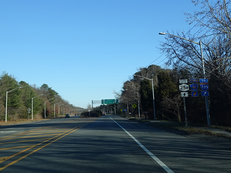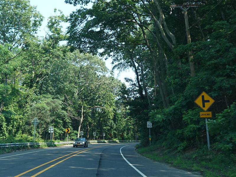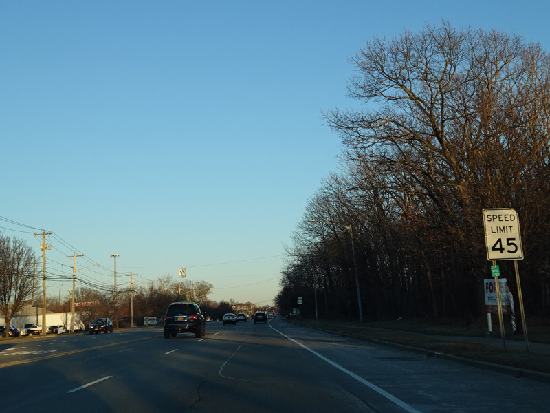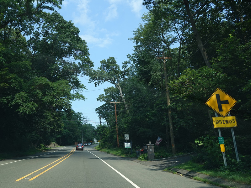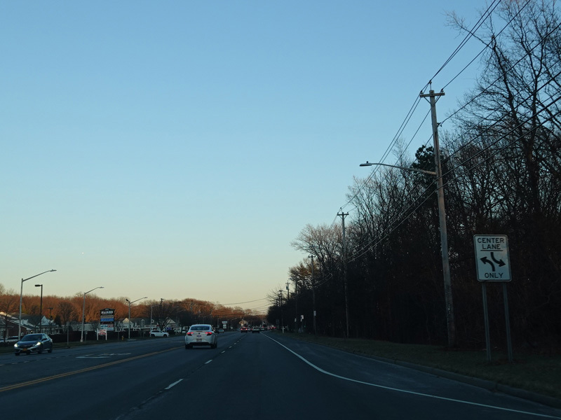 Skipping east to Mount Sinai, NY 25A merges with Nesconset Highway (NY 347) to form a four-lane undivided road.